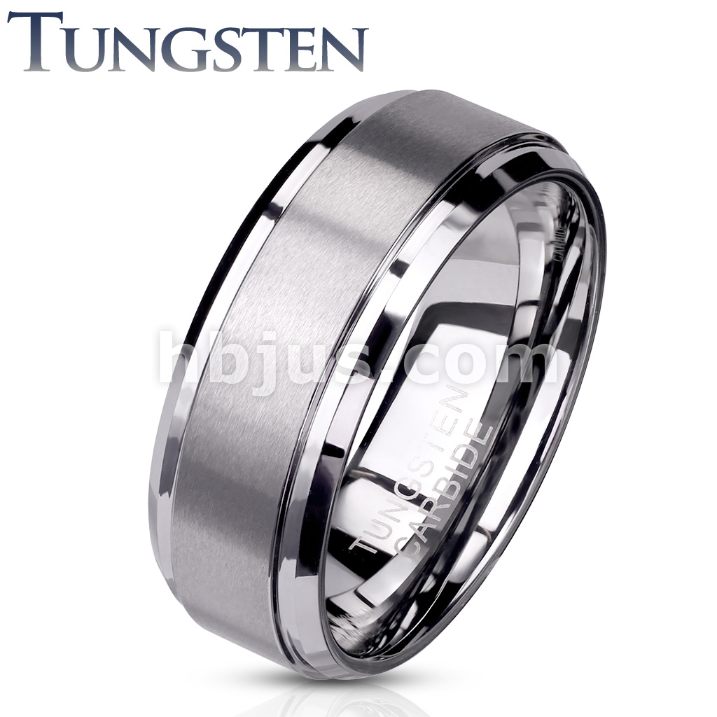 Brushed Center Stepped Edges Tungsten Carbide Rings