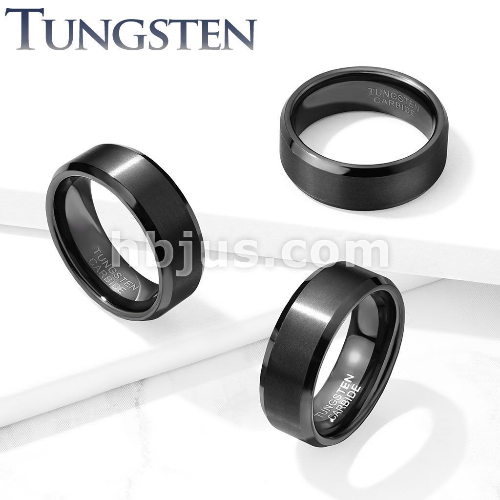 Brushed Center Gun Metal Beveled Edges Tungsten Carbide Rings