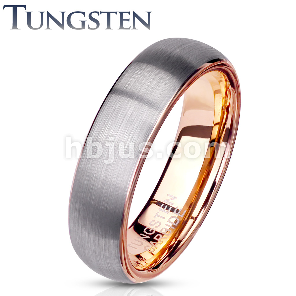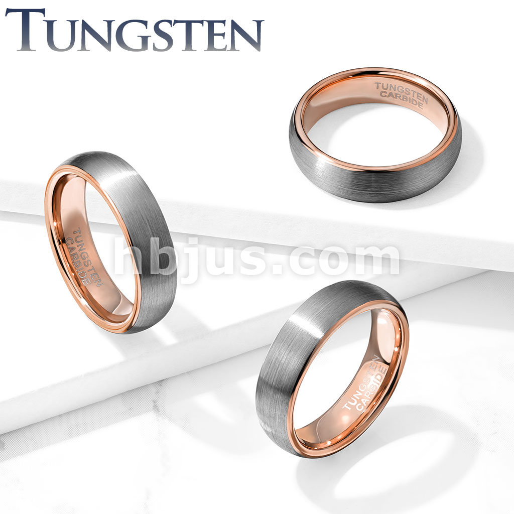 Brushed Finish Surface and Rose Gold PVD Inside Tungsten Carbide Classic Dome Rings