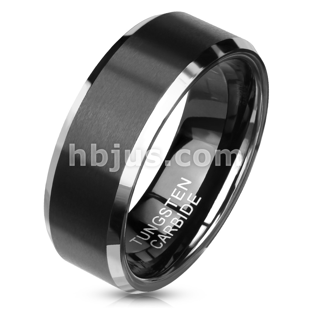 Black Brushed Center Black PVD Stepped Edges Tungsten Carbide Rings