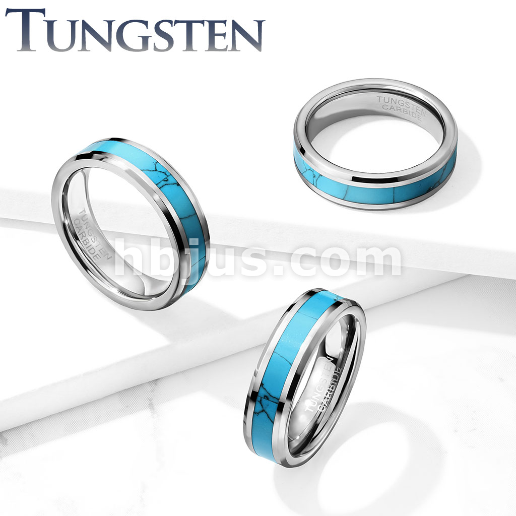 Turquoise Inlay Center Beveled Edges Tungsten Carbide Rings