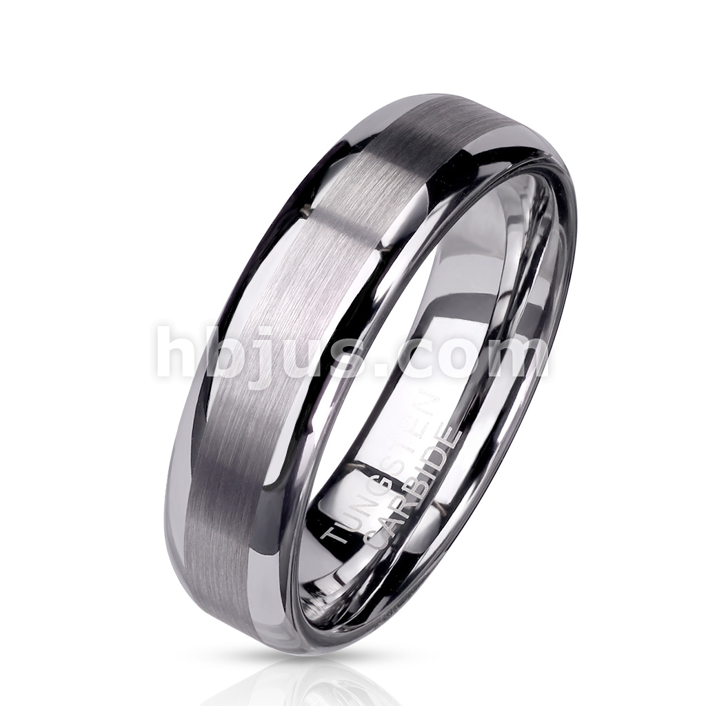 Brushed Center Shiny Edges Tungsten Carbide Rings