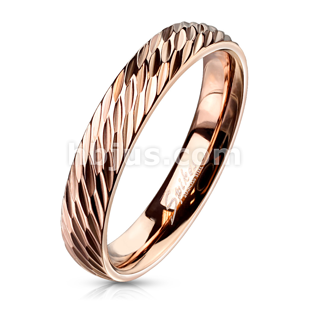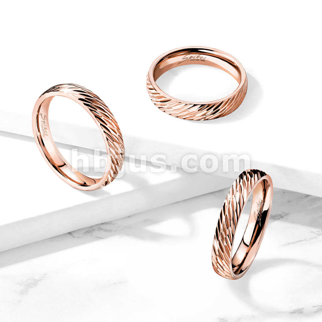 Diagonal Deep Cuts Dome Band Rose Gold IP Stainless Steel Ring