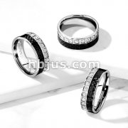 CNC Machine Set CZ Around and Black Carbon Fiber Inlay Stainless Steel Ring