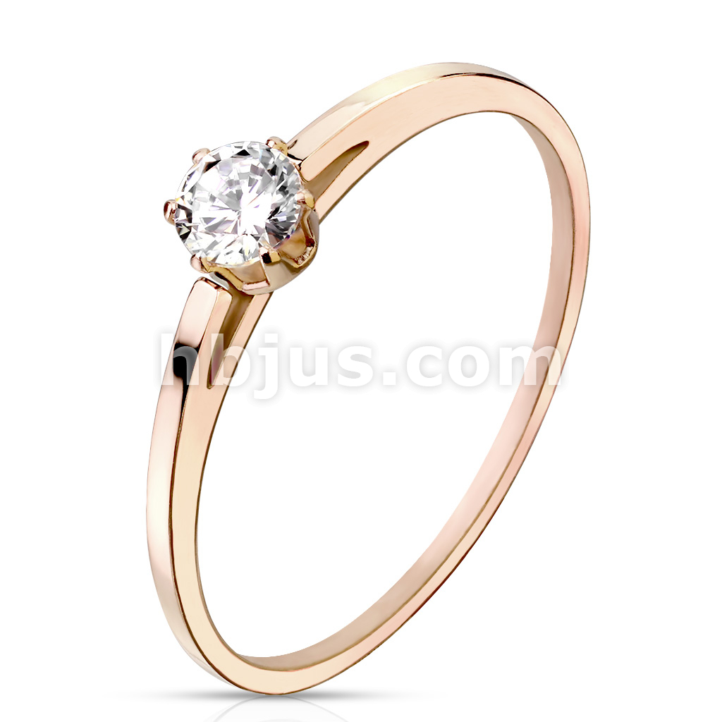 Rose Gold Wedding Band With Prong Set CZ Stainless Steel Ring