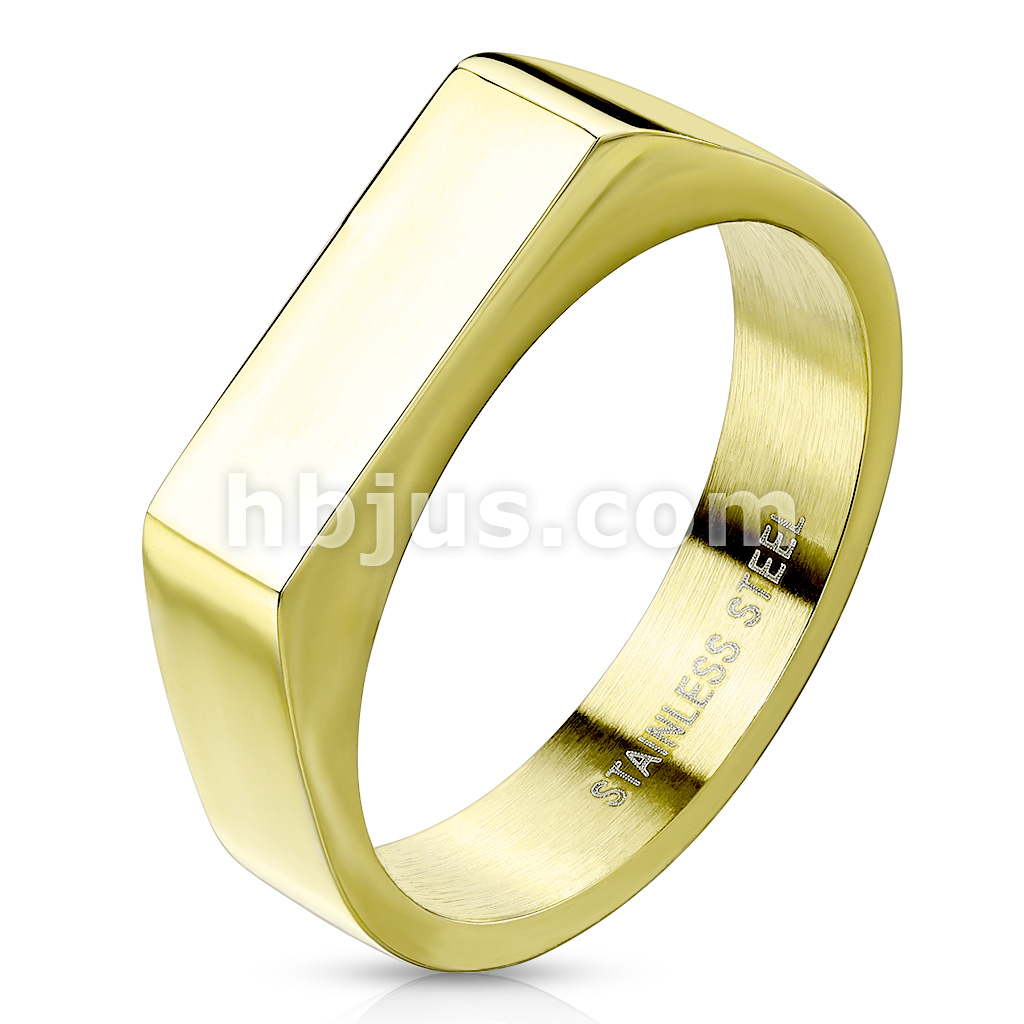 Flat Square Bar Top Gold PVD Over 316L Stainless Steel Rings