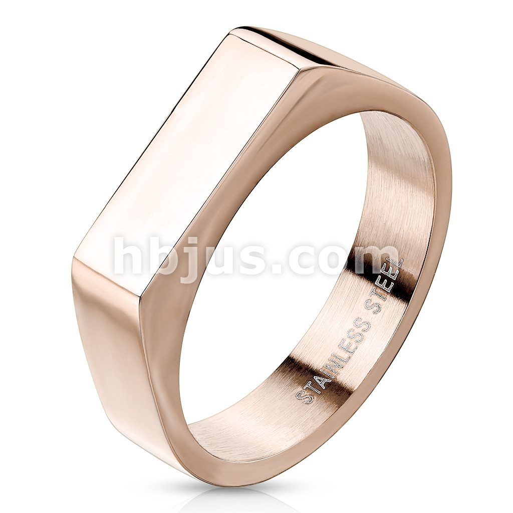 Flat Square Bar Top Rose Gold PVD Over 316L Stainless Steel Rings