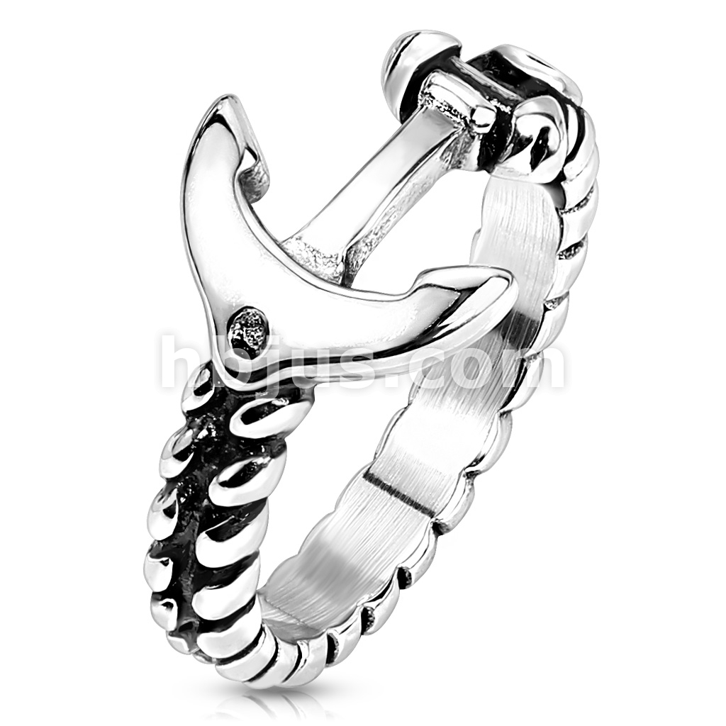 Sail away with this beautiful anchor ring with a rope-shaped band detail.