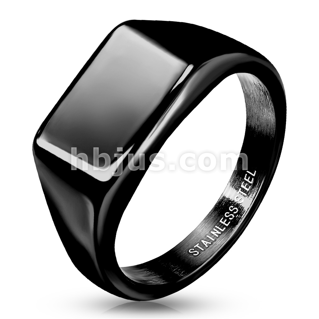 Wide Square Flat Top Black PVD Plated Stainless Steel Ring