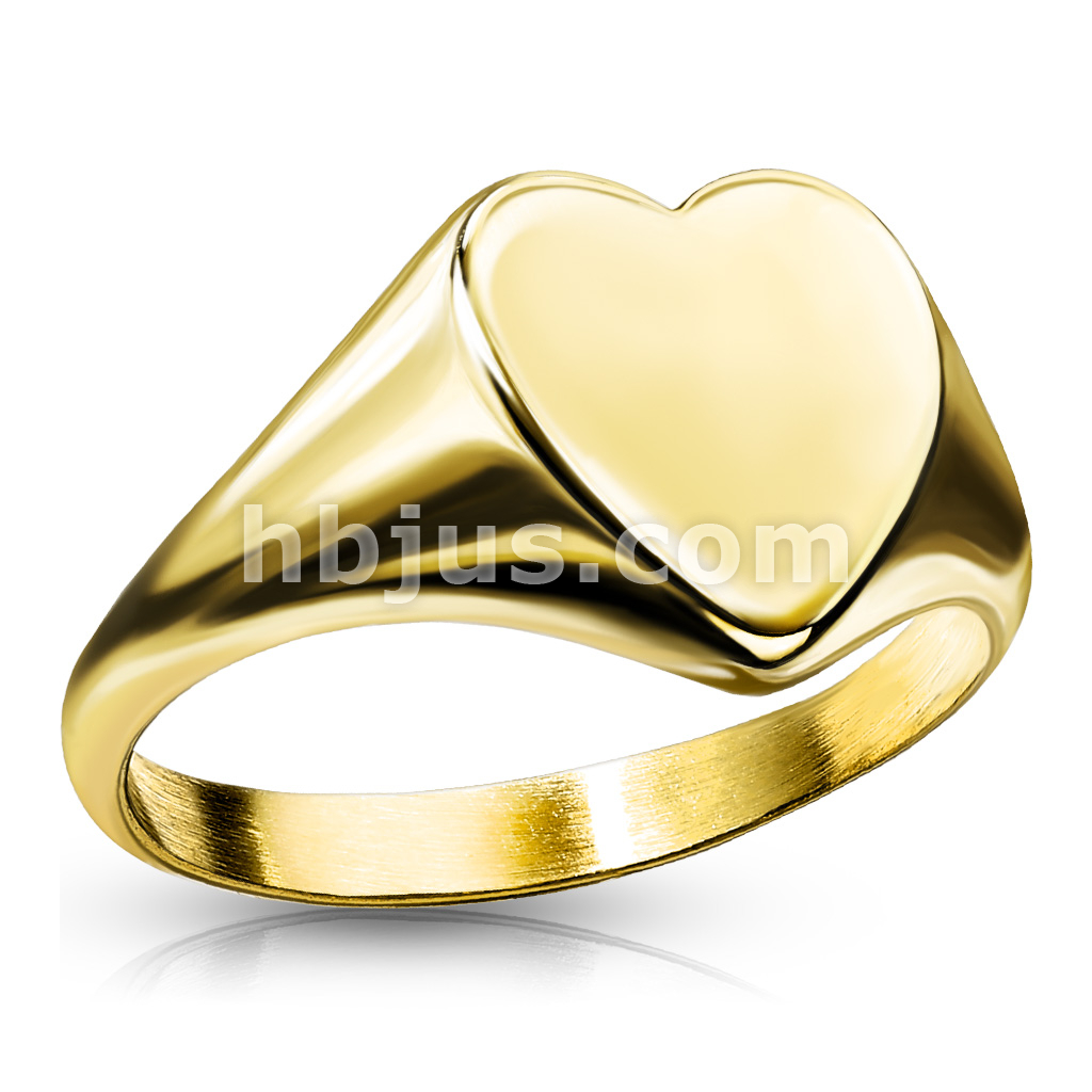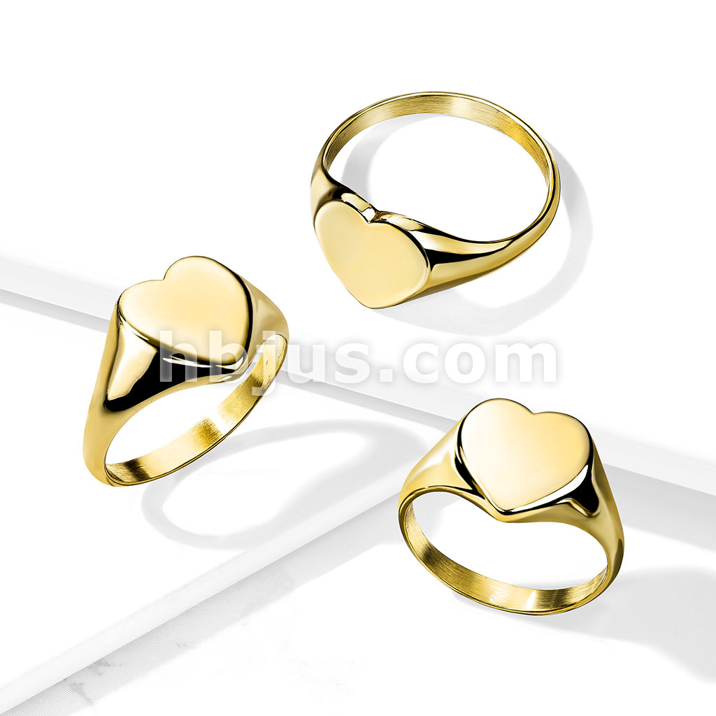 Flat Heart Top Gold PVD Over 316L Stainless Steel Ring