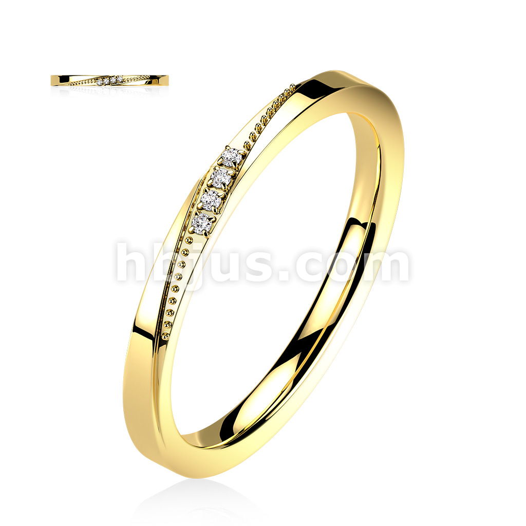 4 CZ Slanted Gold Stainless Steel Ring