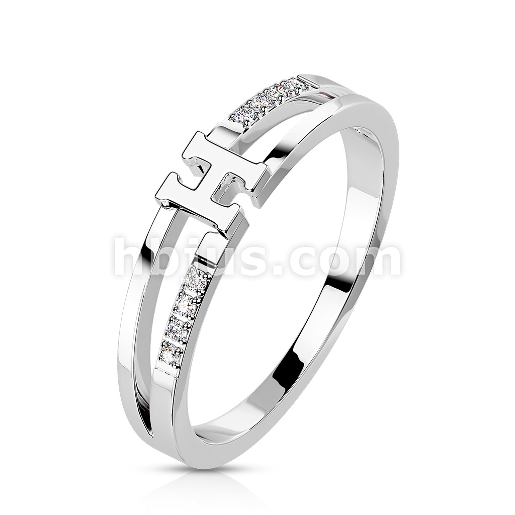H Center with Double CZ Line Stainless Steel Ring