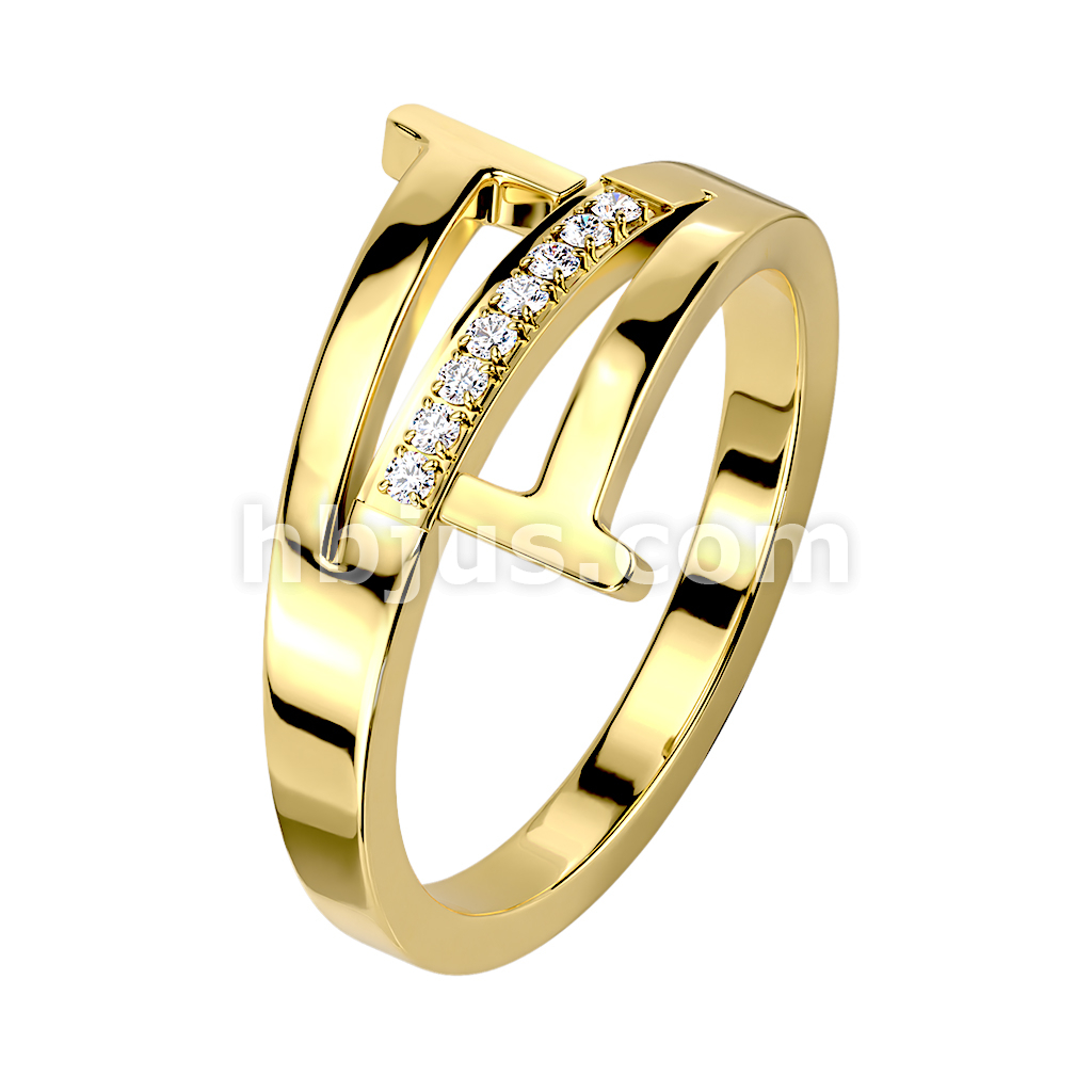 Triple Line With Center Pave CZ's Gold PVD Stainless Steel Ring