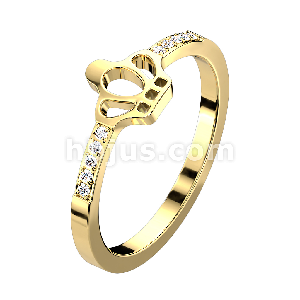 Hollow Crown Center With Pave CZ Gold Stainless Steel Ring