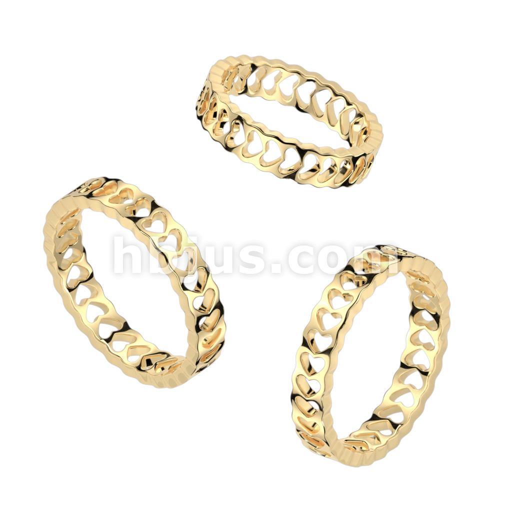 Hollow Heart Gold Stainless Steel Band Ring
