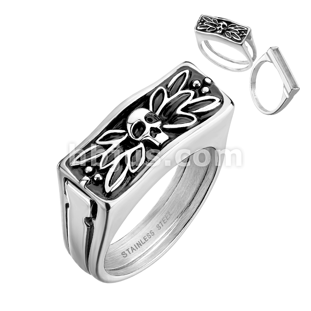 Skull Stainless Steel 2 Piece Secret Compartment Ring