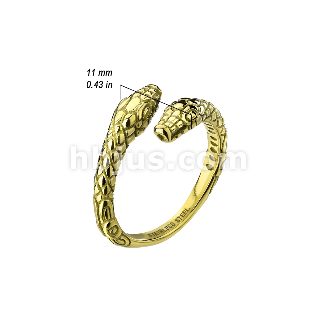 Gold Stainless Steel Wrap Around 2 Headed Snake Ring