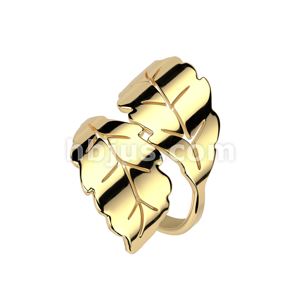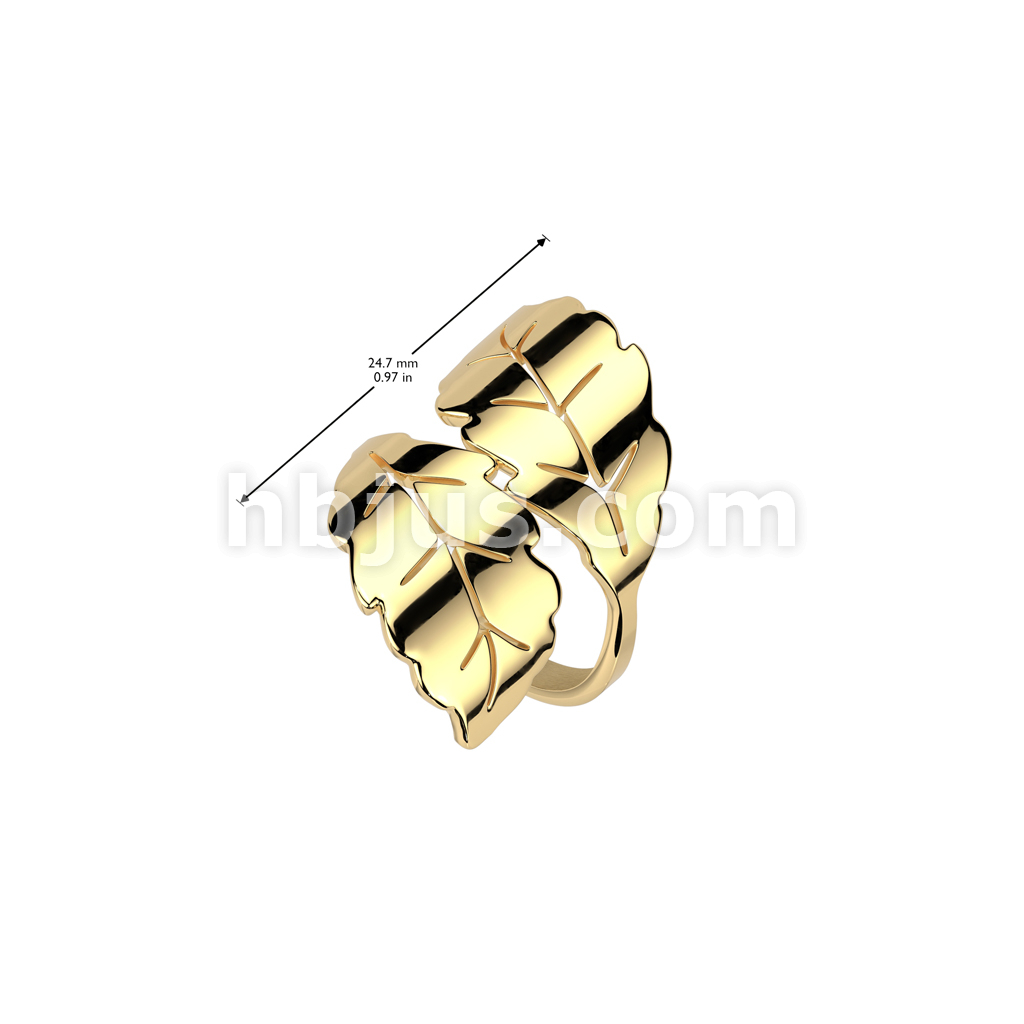 Gold Stainless Steel Wrap Around 2 Leaf Ring