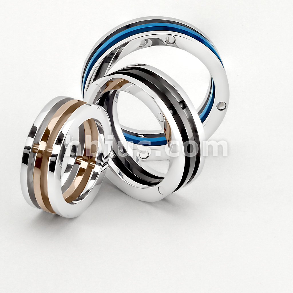 3-Connected Pieces Rose Gold IP Center 316L Surgical Stainless Steel Ring