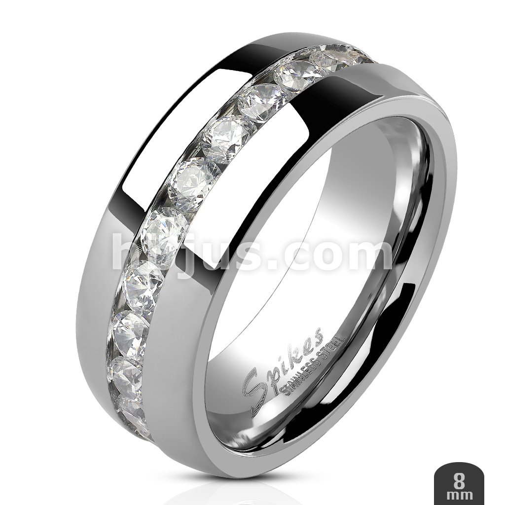 Clear CZ Channel Set Eternity Ring Stainless Steel