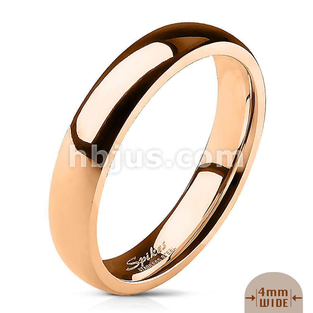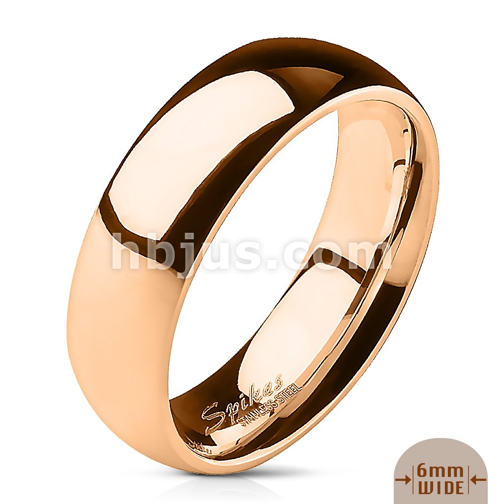 Glossy Mirror Polished Rose Gold IP Dome Band Ring 316L Stainless Steel
