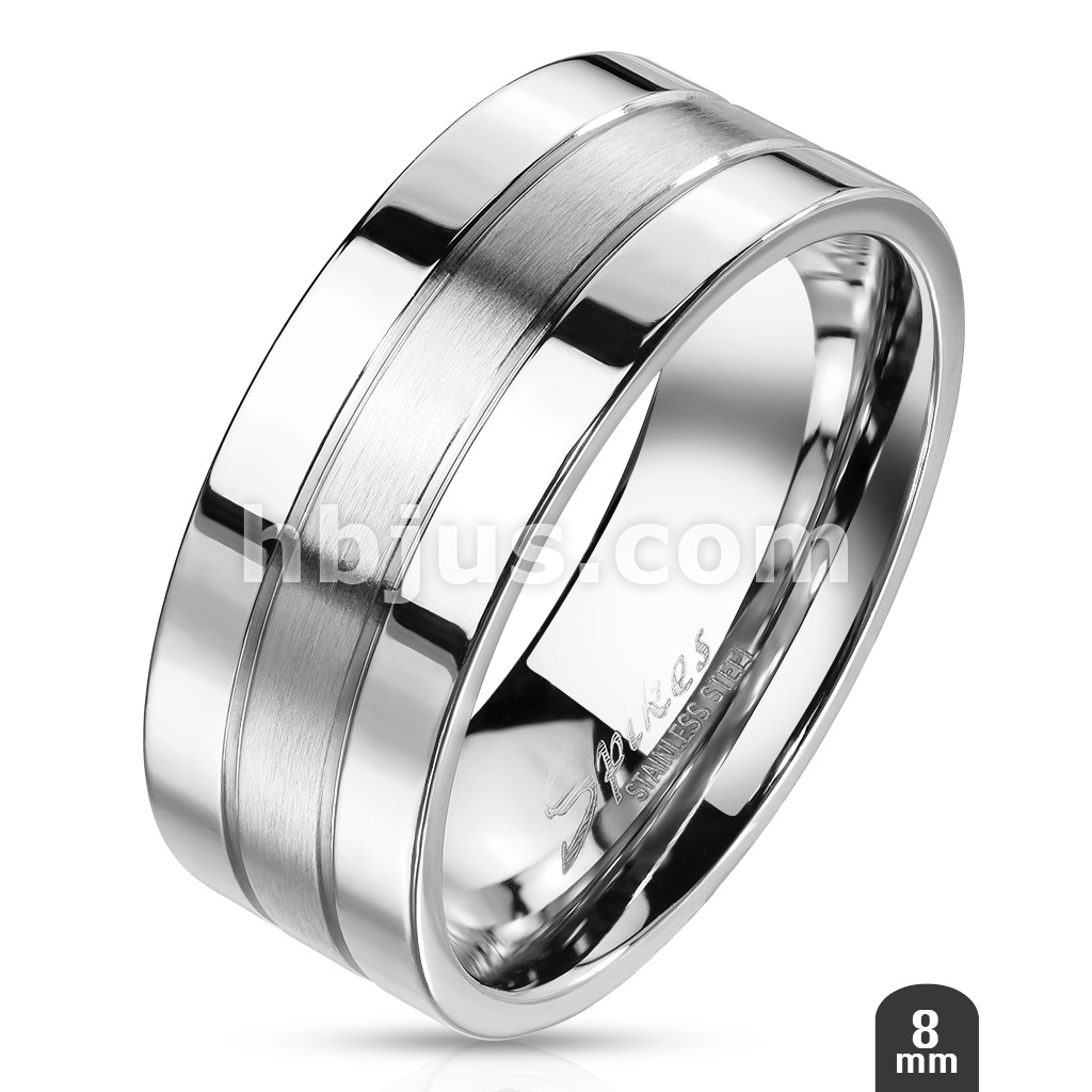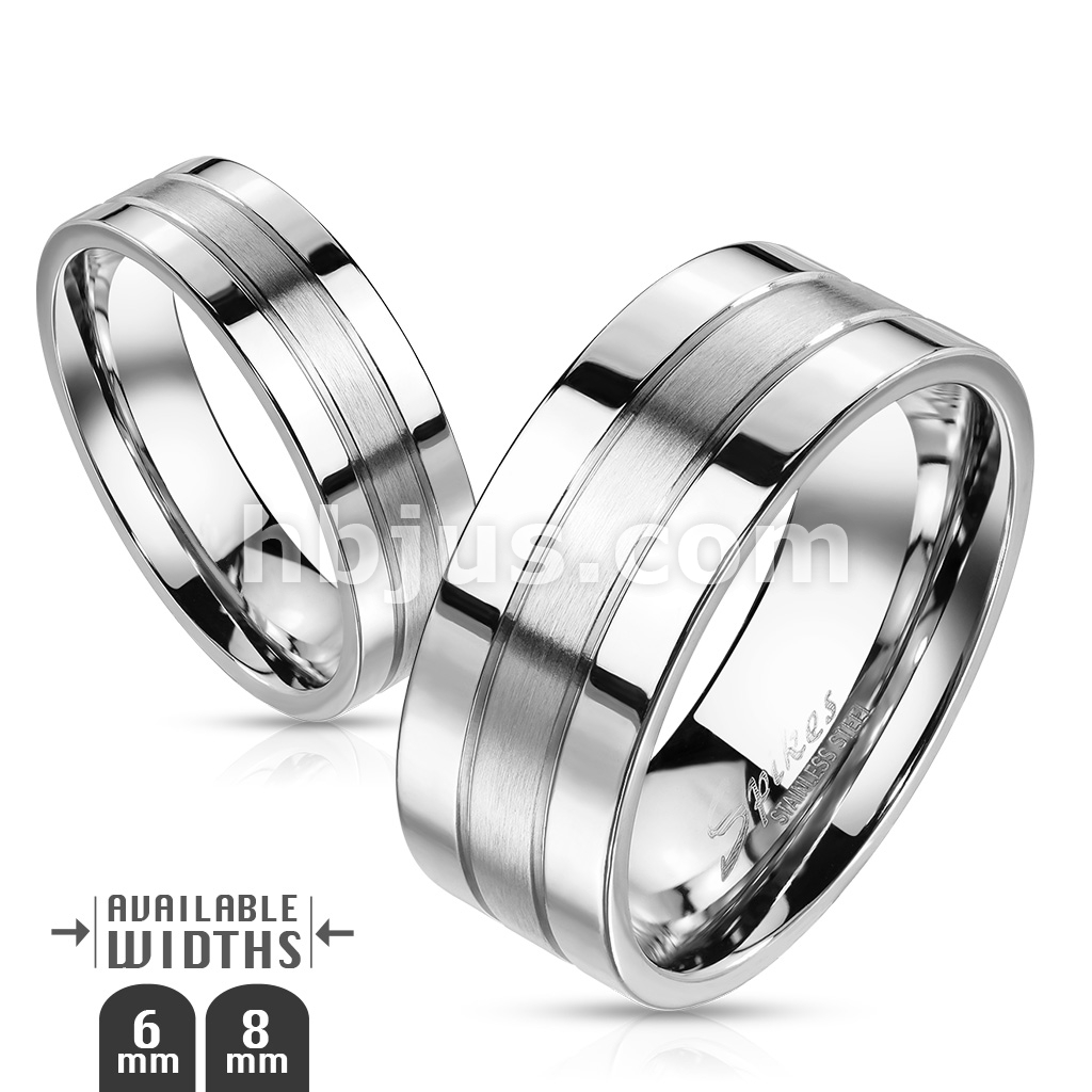 Double Lined and Brushed Center Two Tone Stainless Steel Rings