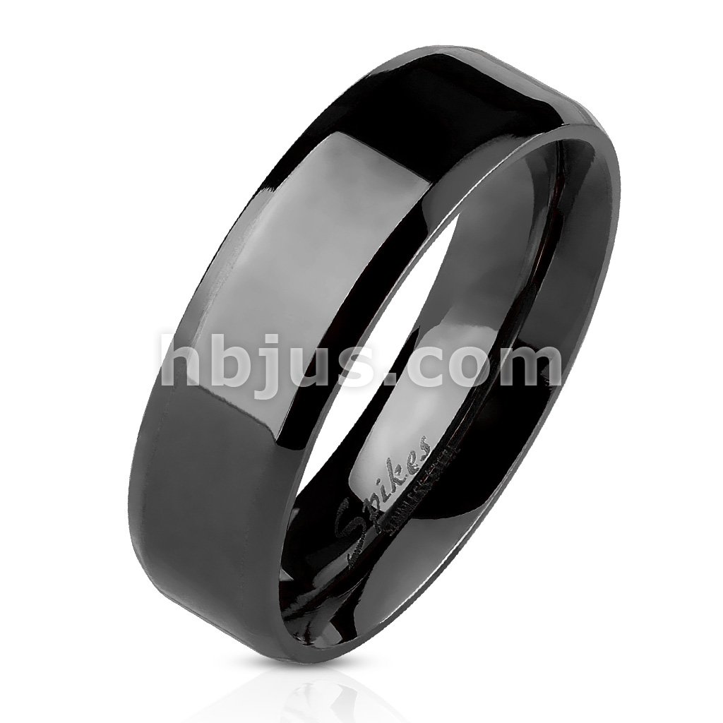Beveled Edge Flat Band Black IP Over Stainless Steel Ring