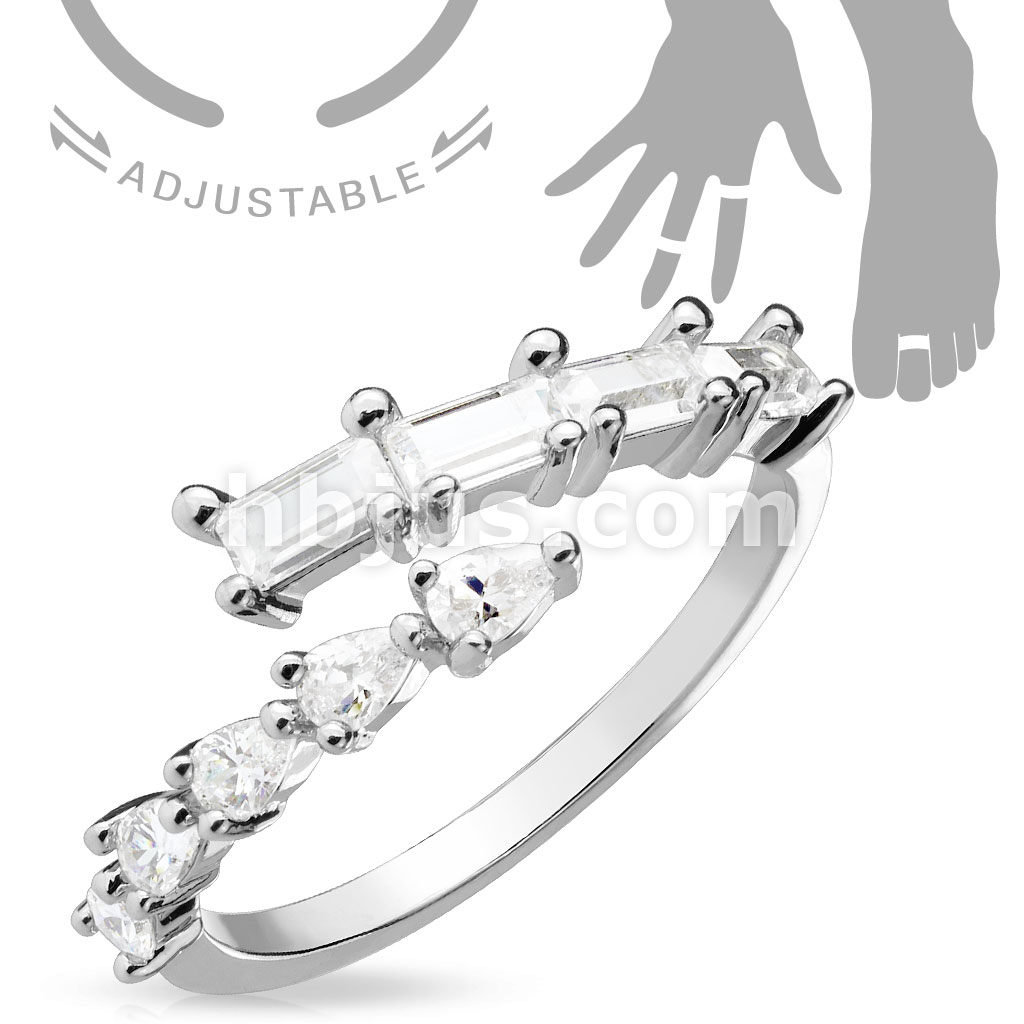 Adjustable Toe Ring/Mid Ring Pear CZs and Princess Cut CZs Crossing