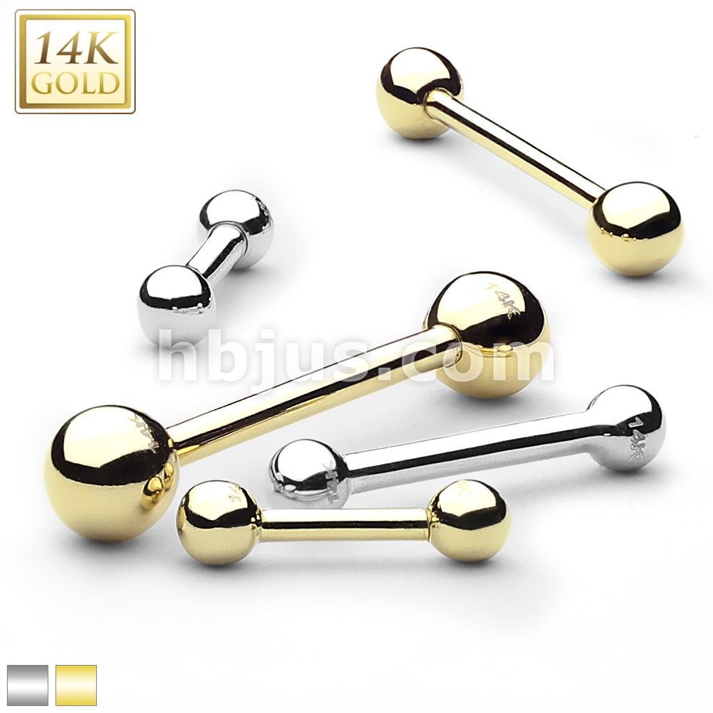 14Kt. Solid Gold Barbell Stud Rings for Tongue, Ear Cartilage, Industrial, Nipple and More