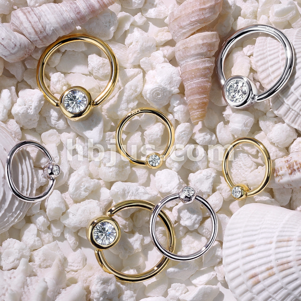 14K Gold CZ Set Gem Ball Captive Bead Ring