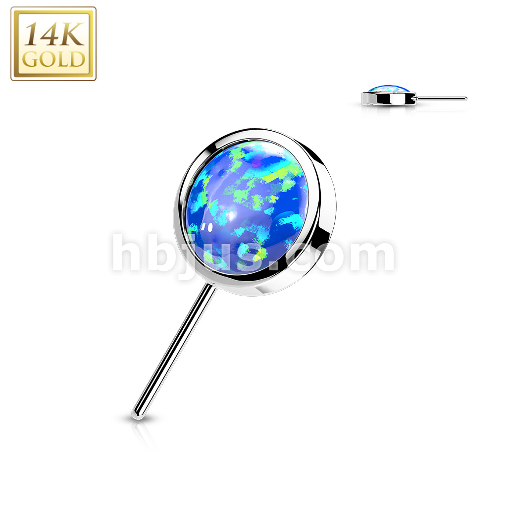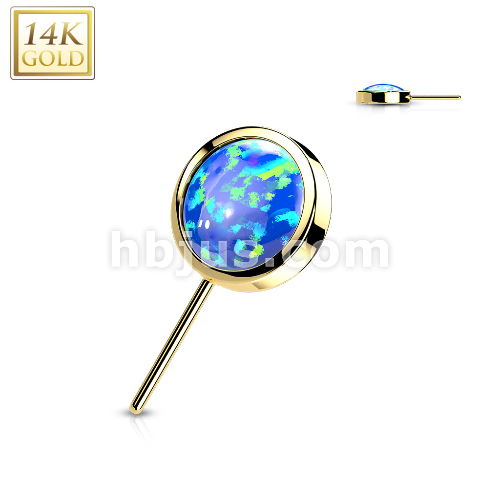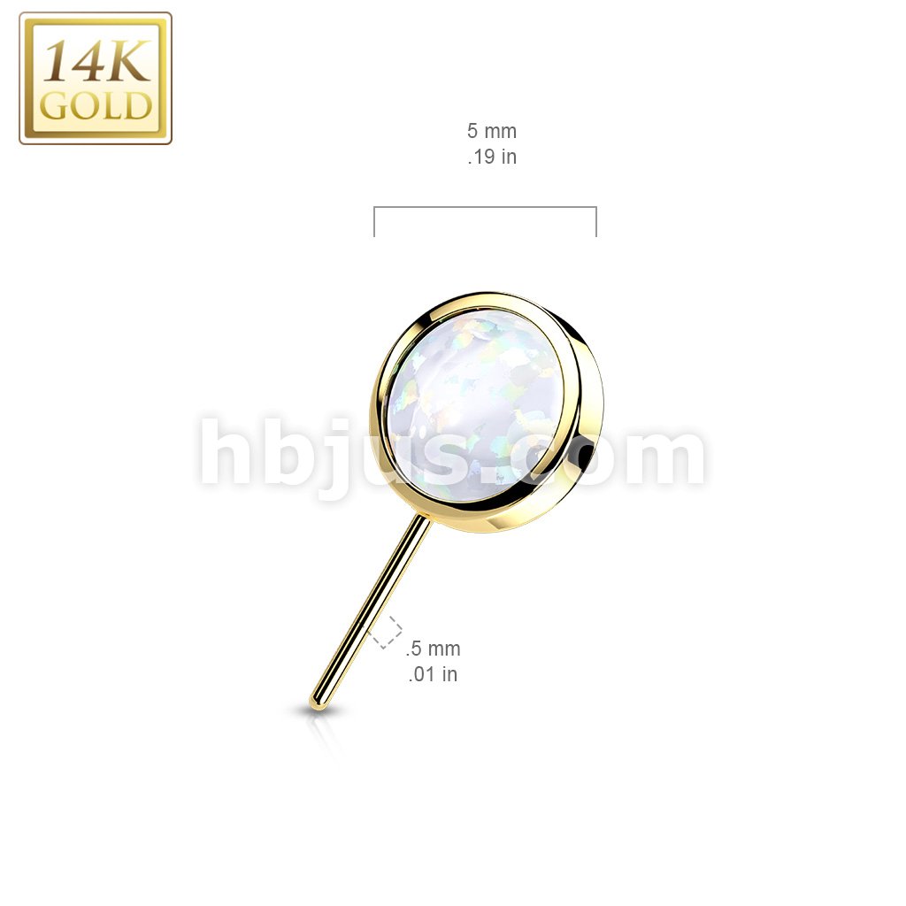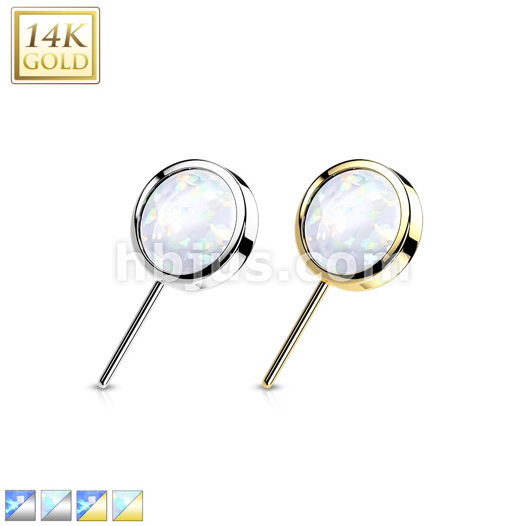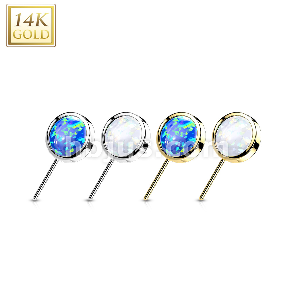 14K Gold Threadless Push In Front Facing Opal Bezel Set Balls