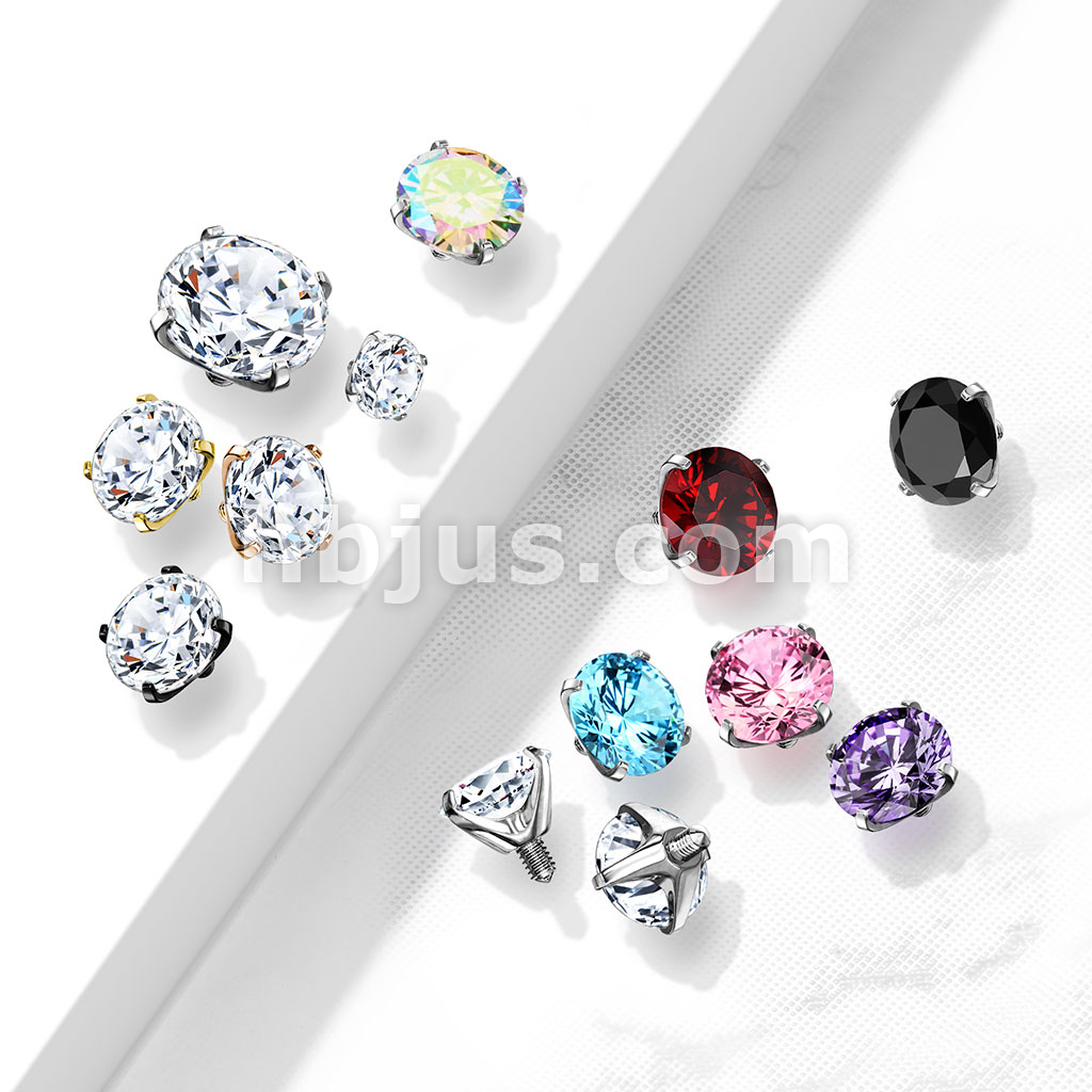 10 pc Pack Internally Threaded 316L Surgical Steel CZ Prong Set Top Ends