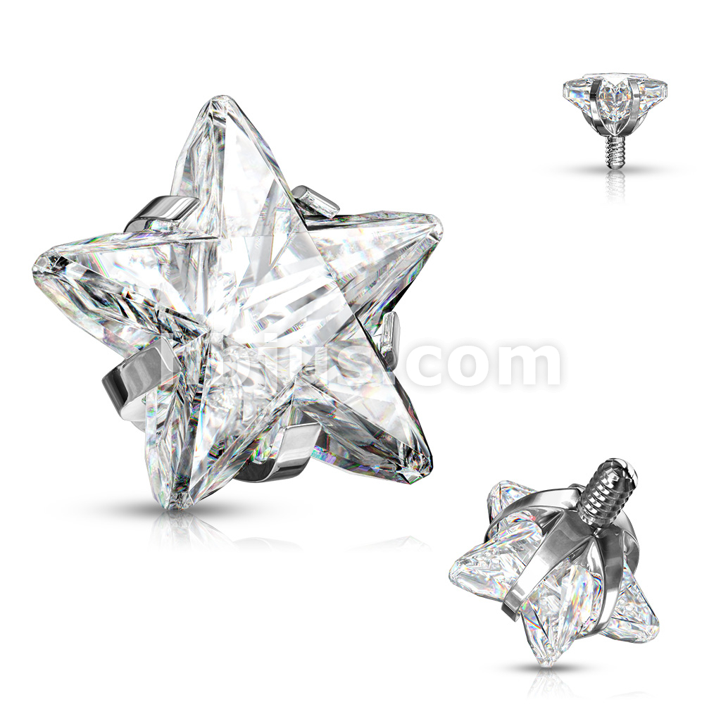 10 pc Pack Internally Threaded 316L Surgical Steel Star CZ Prong Set Top Ends