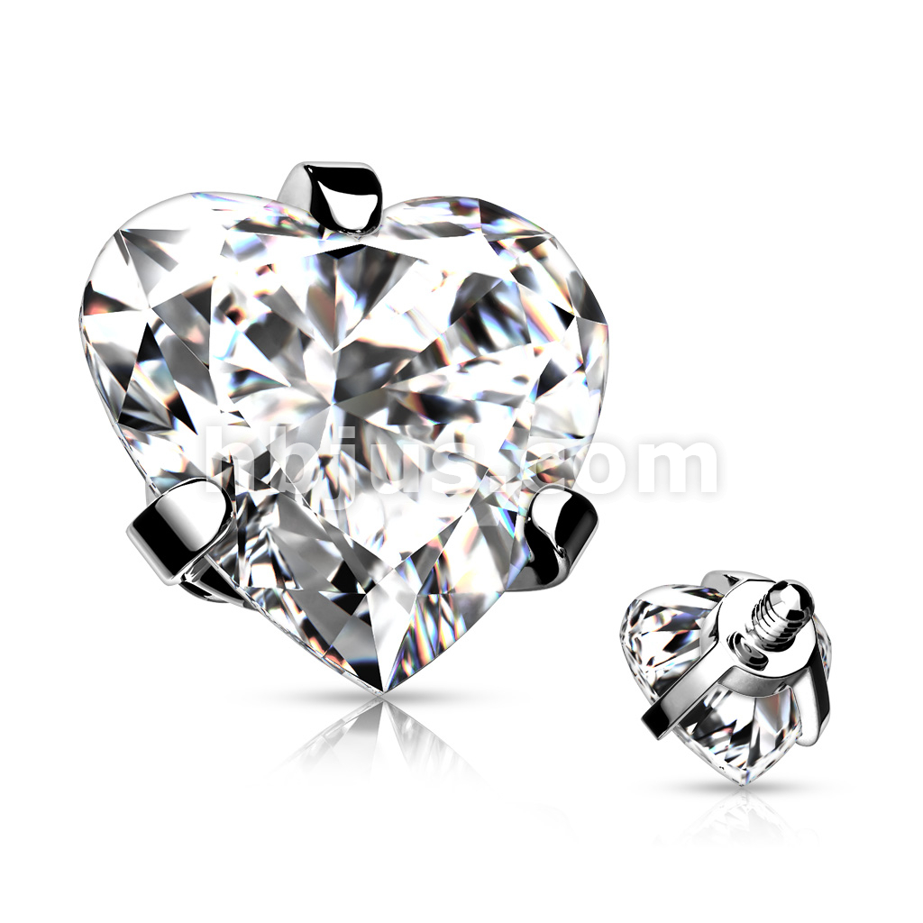 10 pc Pack Internally Threaded 316L Surgical Steel Heart CZ Prong Set Top Ends