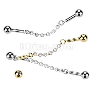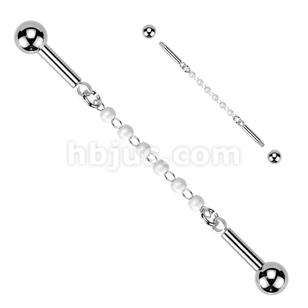 316L Industrial Barbell With Centered 6 Pearl Connector Chain