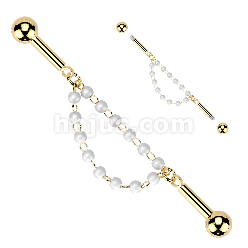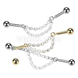 316L Centered Double Connector Chain Industrial Barbell With Pearls