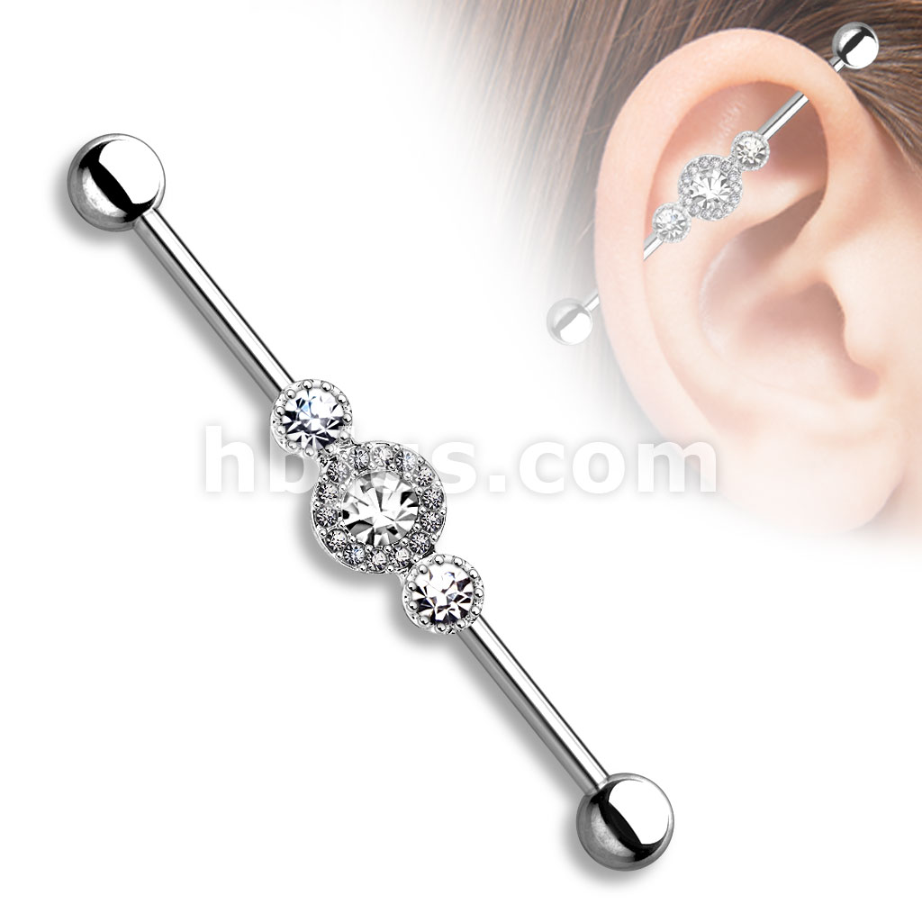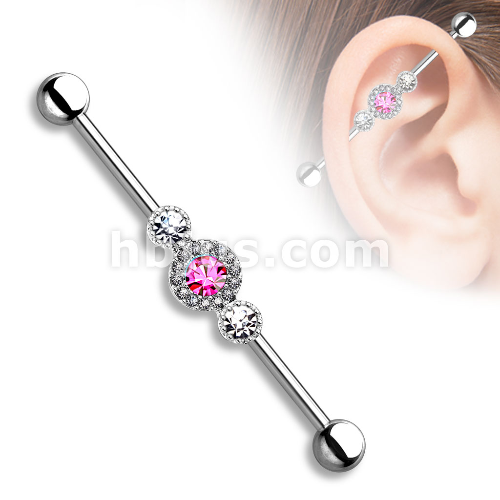 30 pcs Triple Round CZ Center 316L Surgical Steel Industrial Barbells Mix Bulk Pack (6 Pcs x 5 Colors = 30 Pcs)