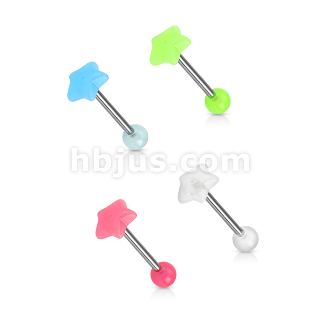 4 Pcs Value Pack Glow in the Dark Star Top 316L Surgical Steel Barbells
