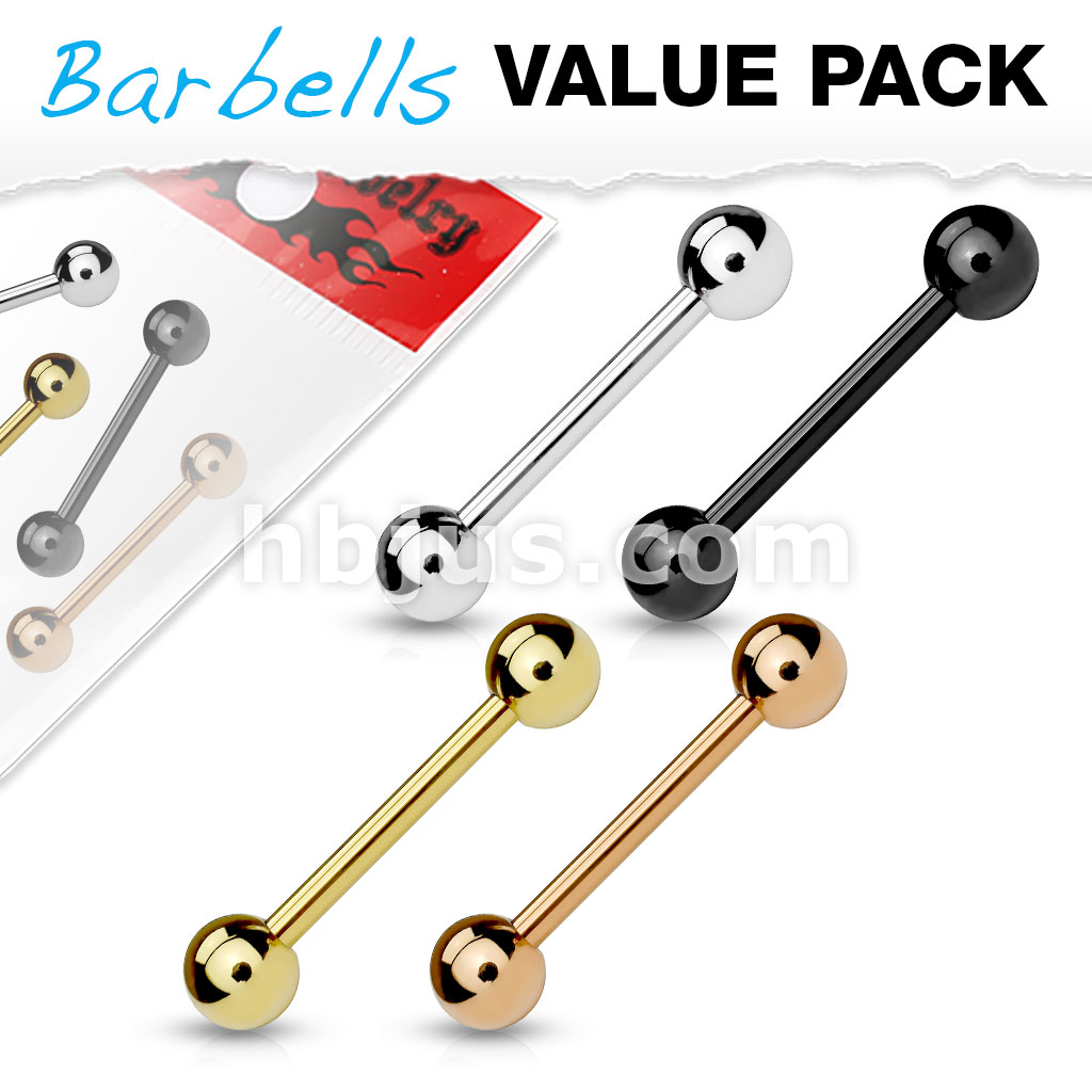 4 Pcs Value Pack Mixed IP Color Over 316L Surgical Steel Barbells