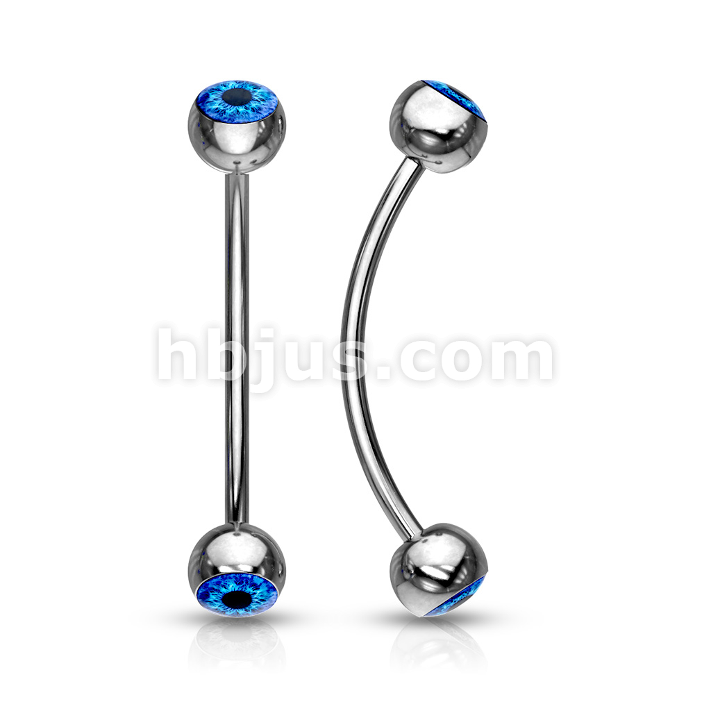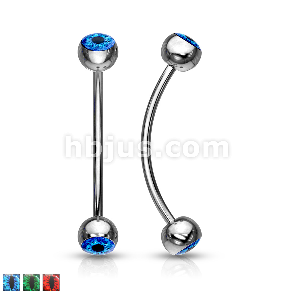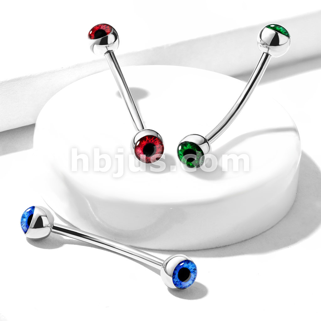 316L Surgical Steel Curved Barbell with Eyeball Inlaid Ball Ends for Snake Eye Piercing and More