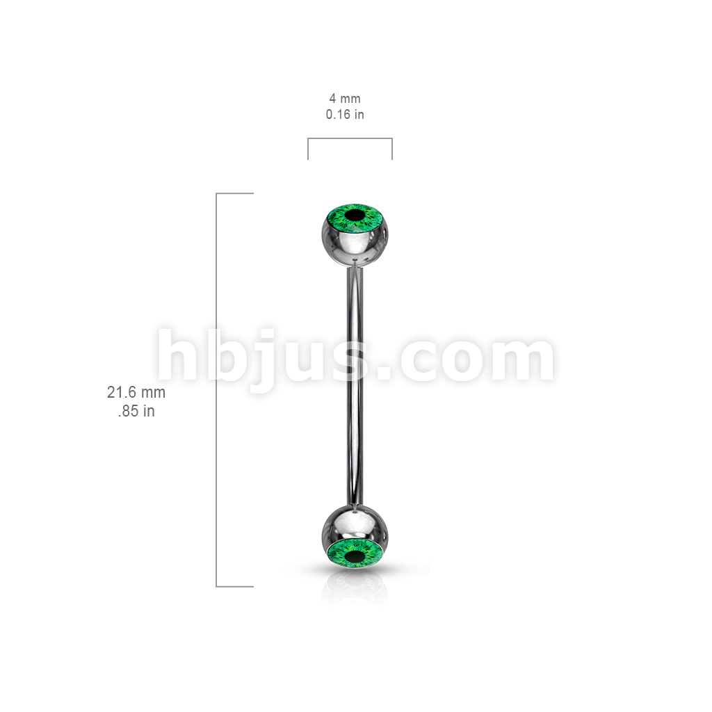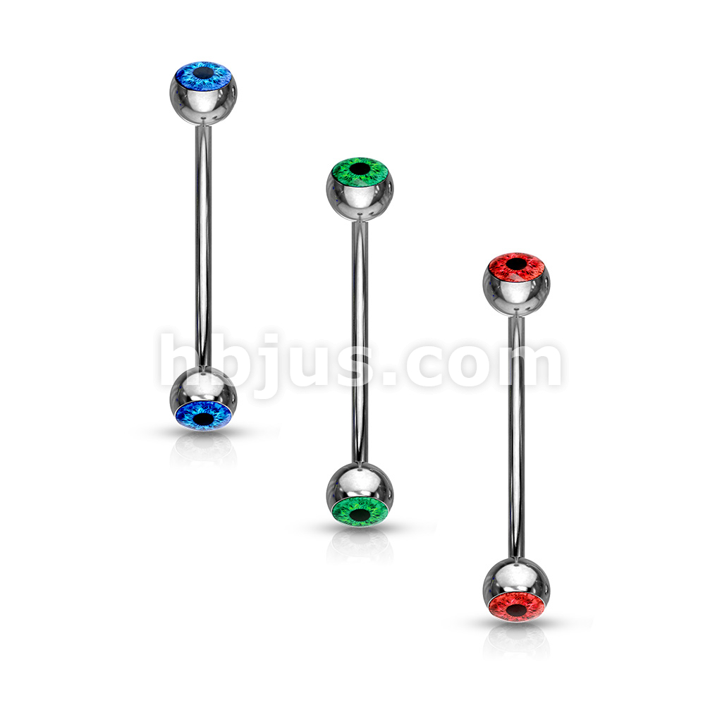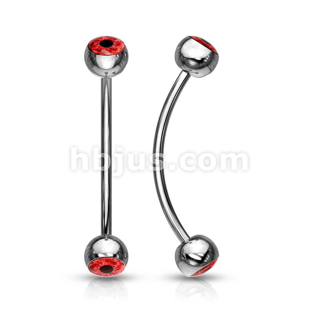 316L Surgical Steel Curved Barbell with Eyeball Inlaid Ball Ends for Snake Eye Piercing and More