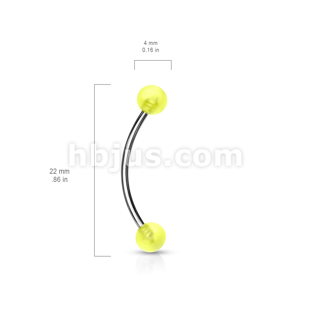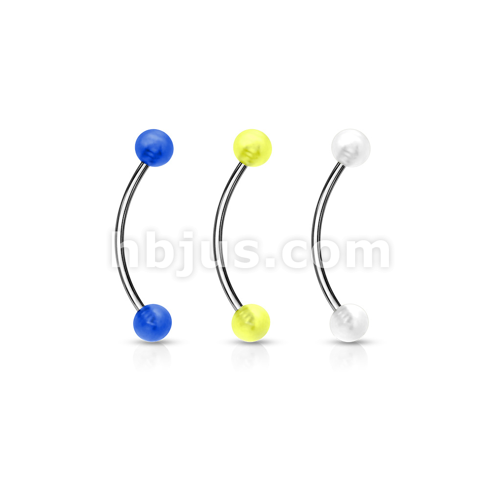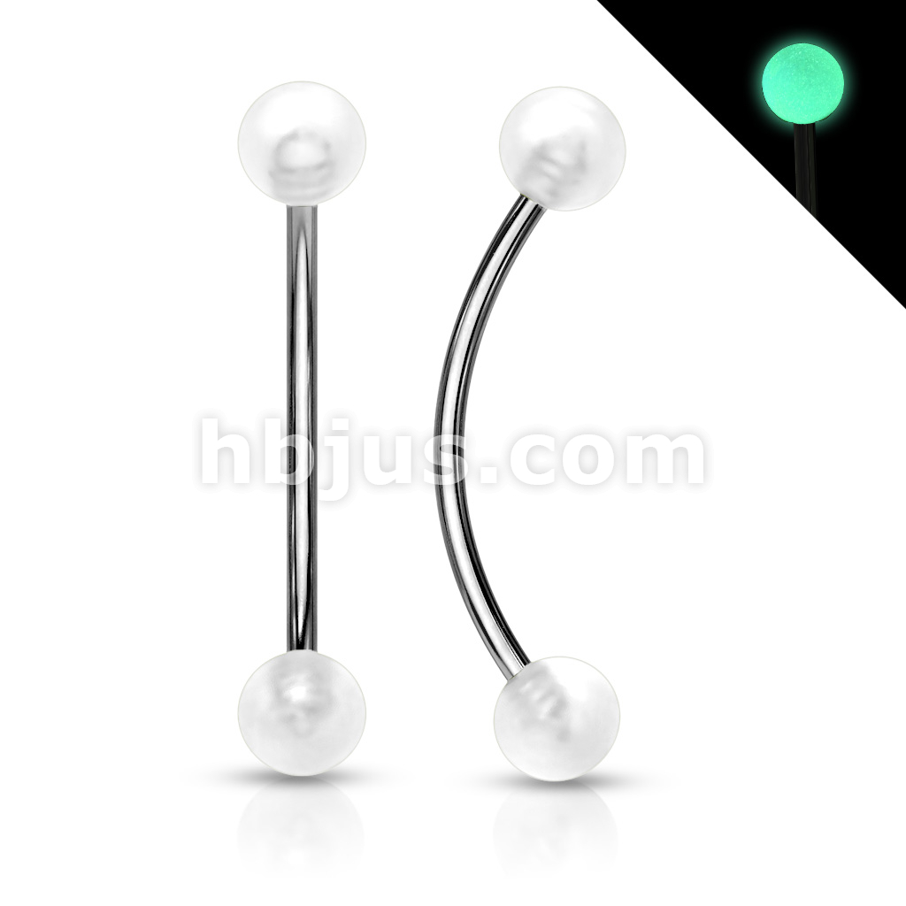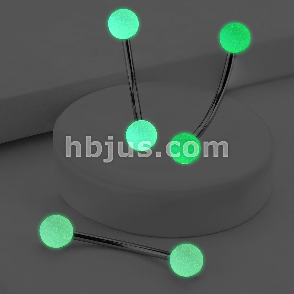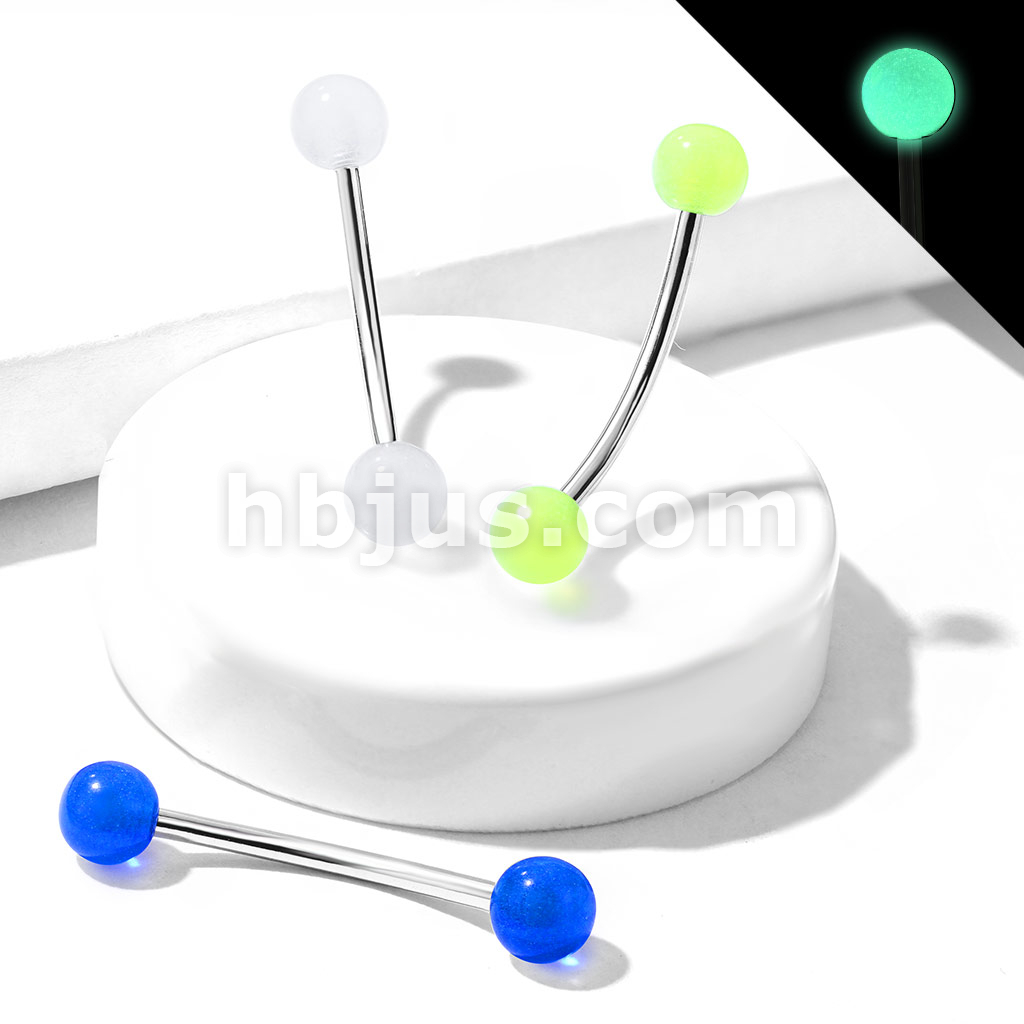 316L Surgical Steel Curved Barbell with Glow in the Dark Ball Ends for Snake Eye Piercing and More