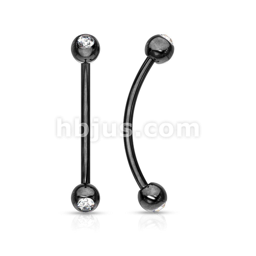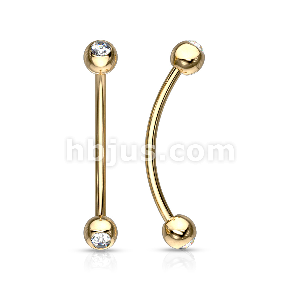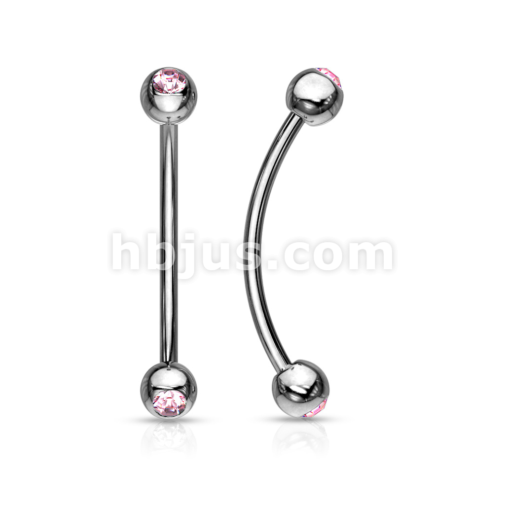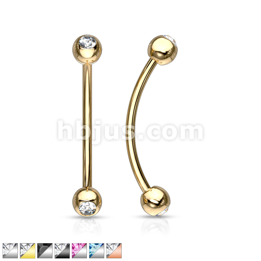 316L Surgical Steel Curved Barbell with Gemmed Ends for Snake Eye Piercings and More