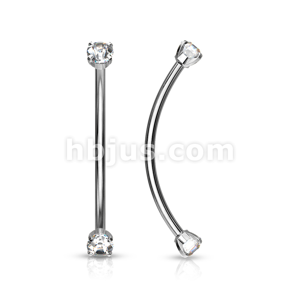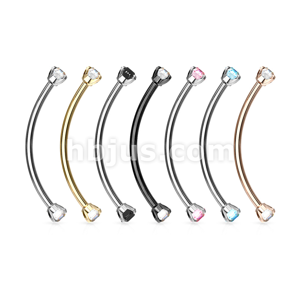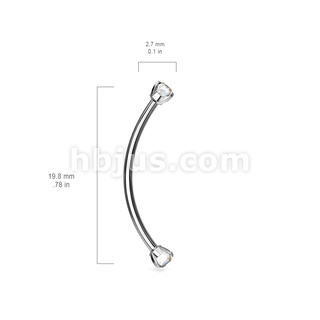 316L Surgical Steel Curved Barbell with Prong Set Round CZ Ends for Snake Eye Piercings and More