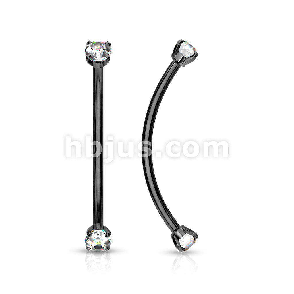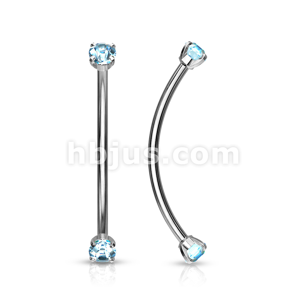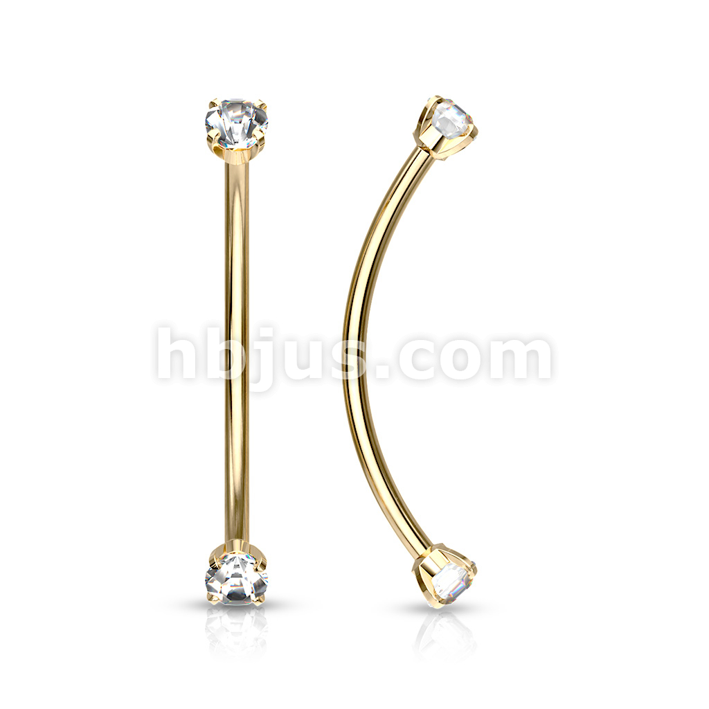 316L Surgical Steel Curved Barbell with Prong Set Round CZ Ends for Snake Eye Piercings and More