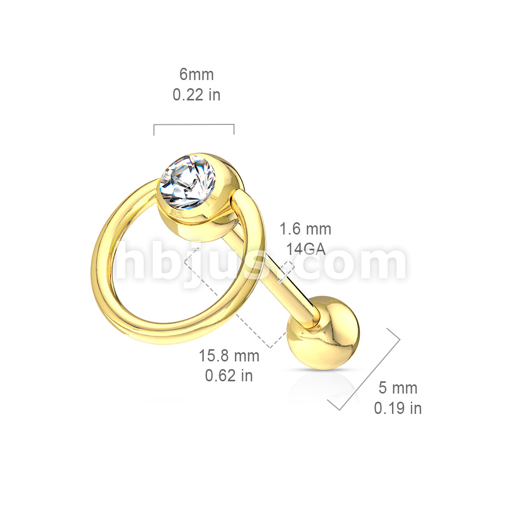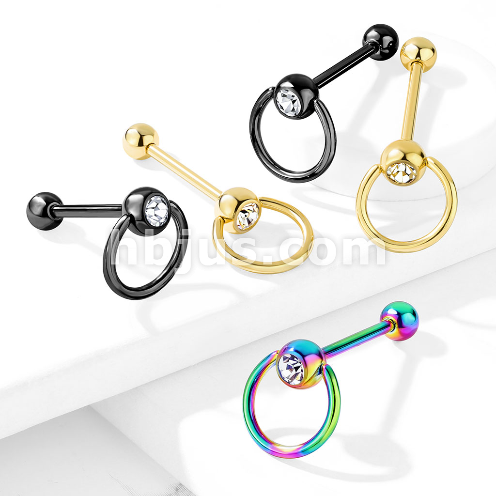 Clear Gem with Slave Ring PVD over 316L Surgical Steel Barbell Tongue Rings