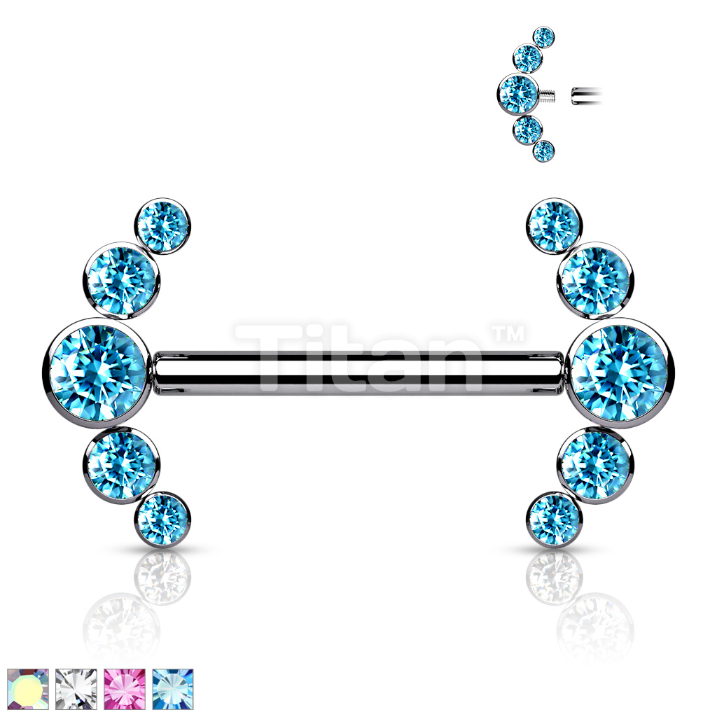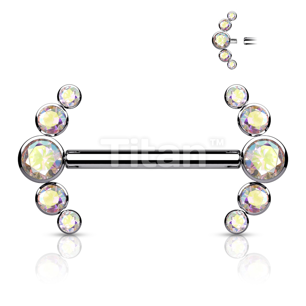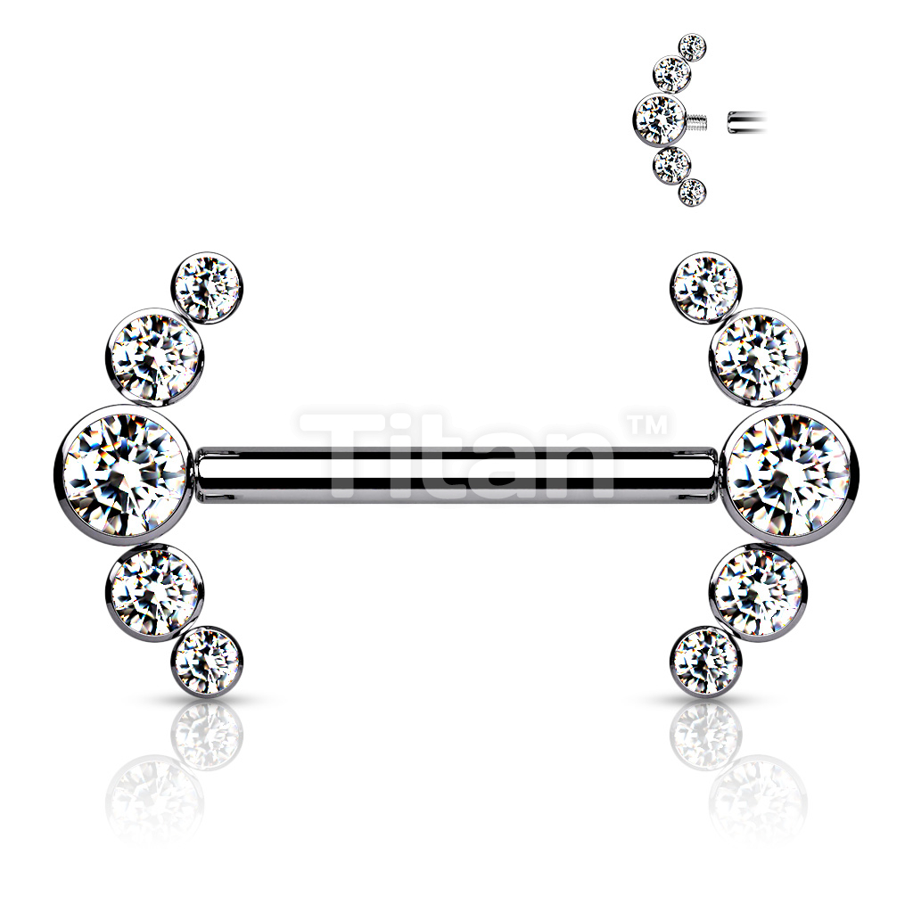 Implant Grade Titanium Internally Threaded Nipple Barbell With 5 Bezel Set CZ Curved Line Ends