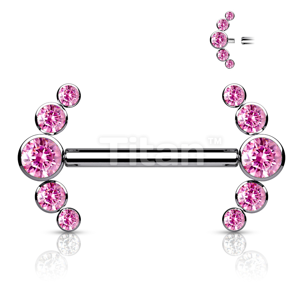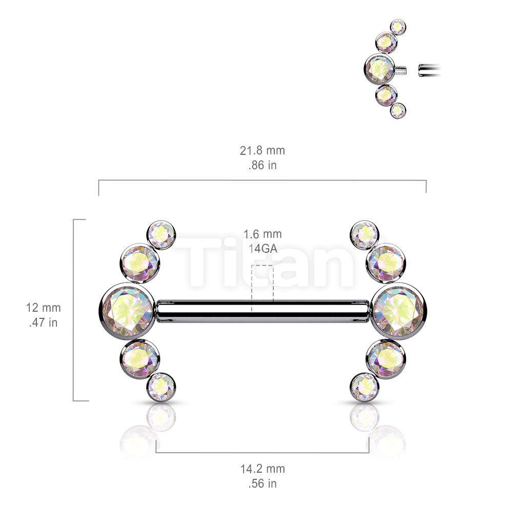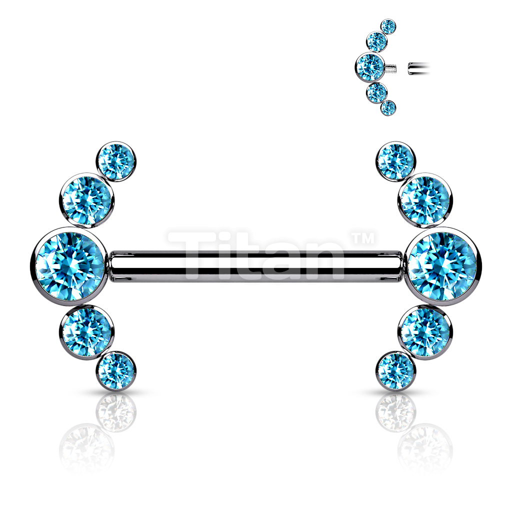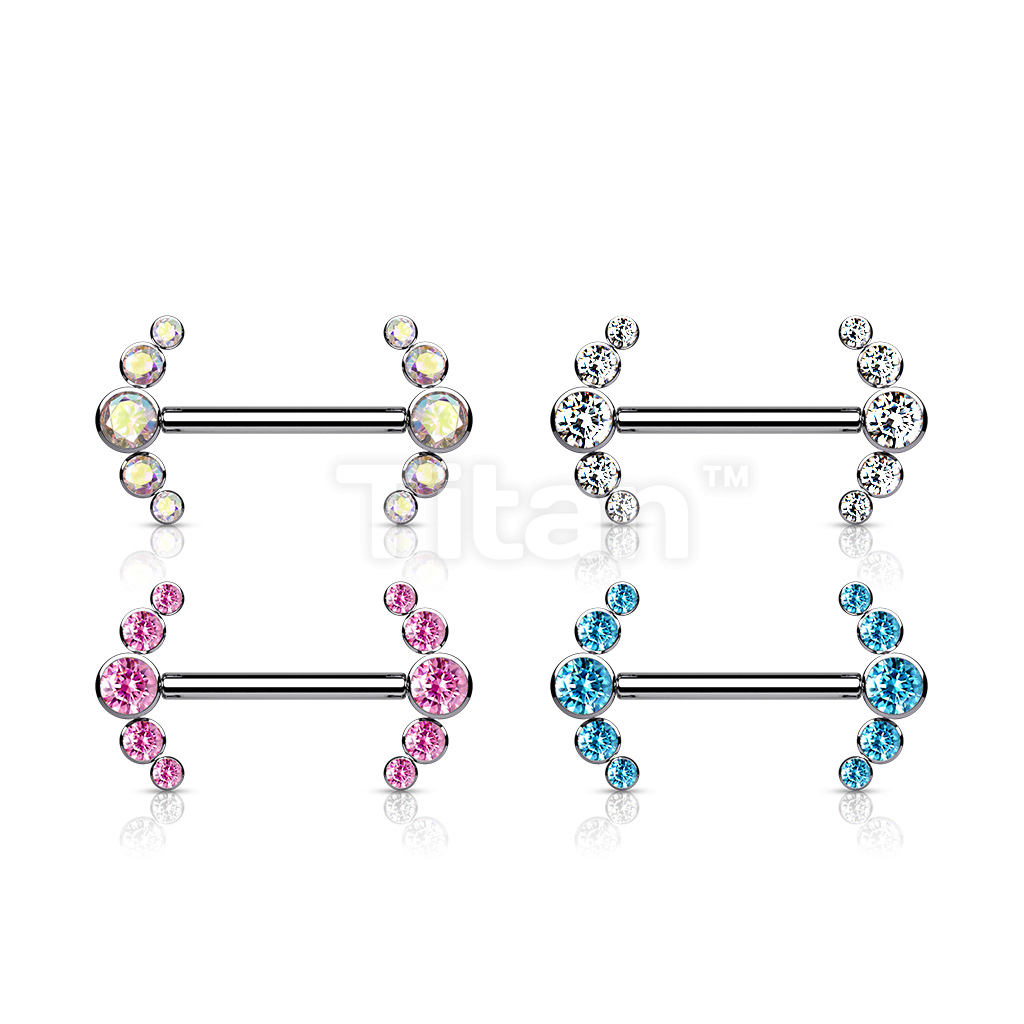 Implant Grade Titanium Internally Threaded Nipple Barbell With 5 Bezel Set CZ Curved Line Ends