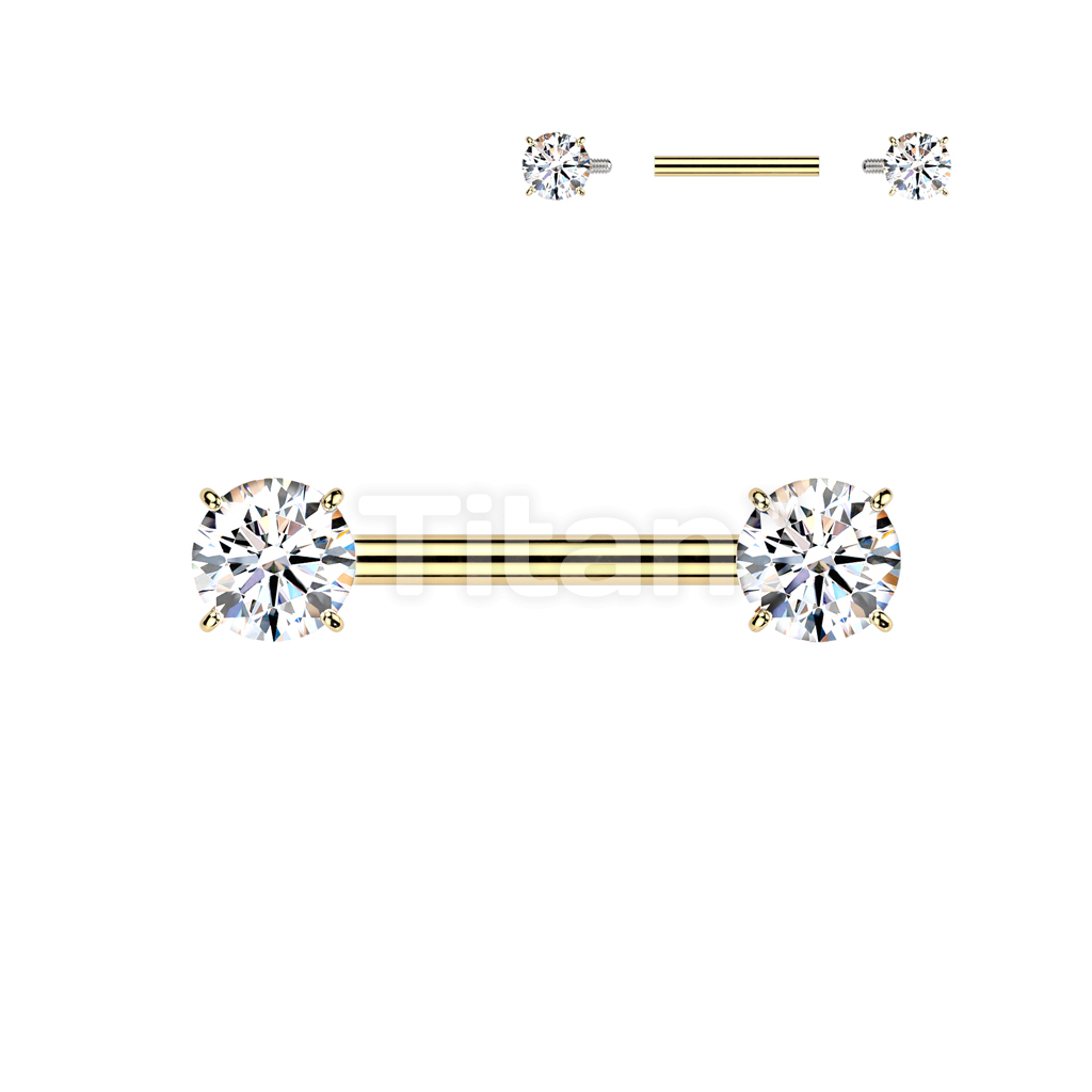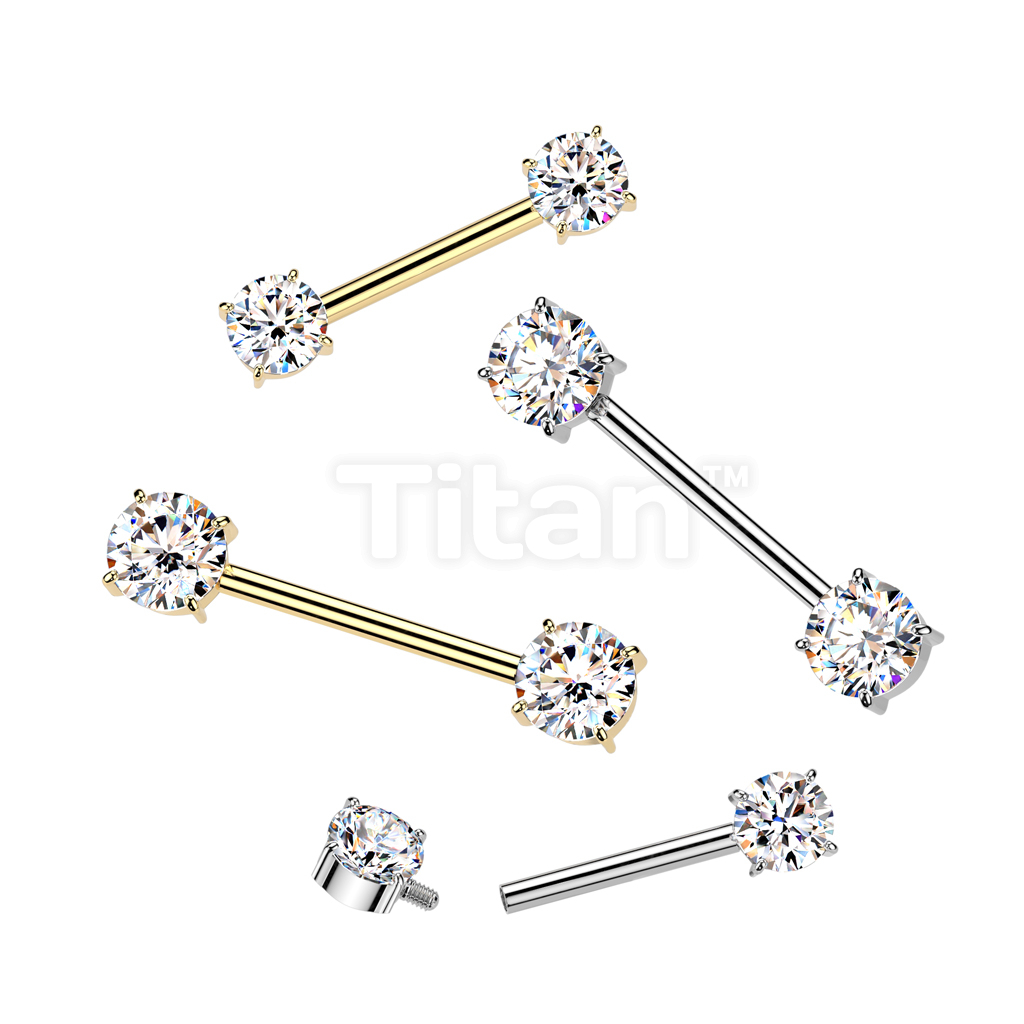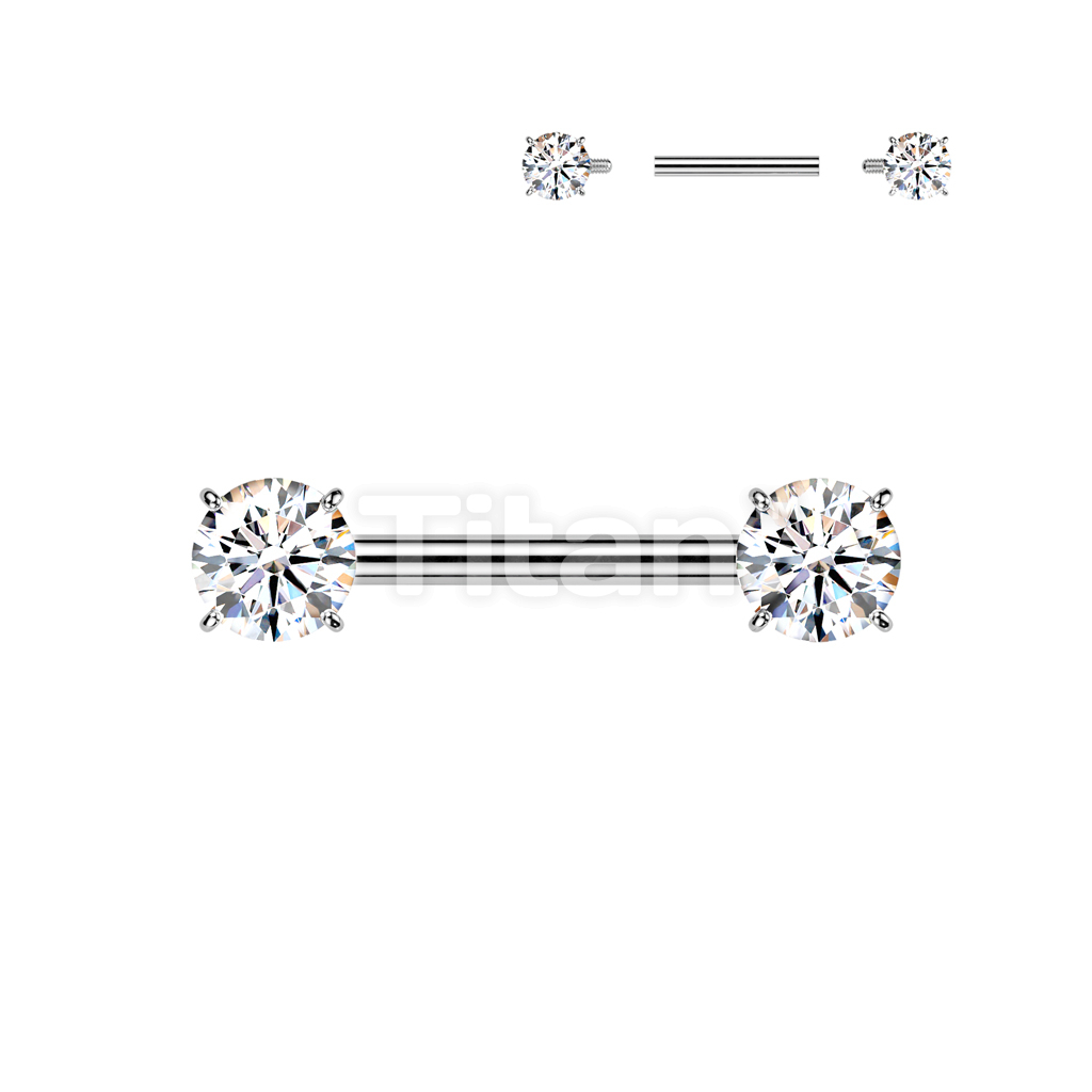 Implant Grade Titanium Internally Threaded Nipple Barbell With Prong Set CZ Ends