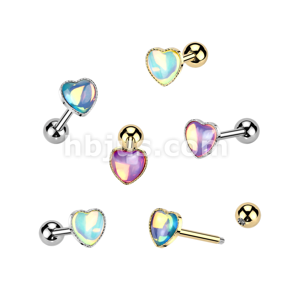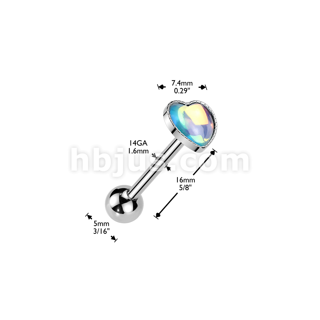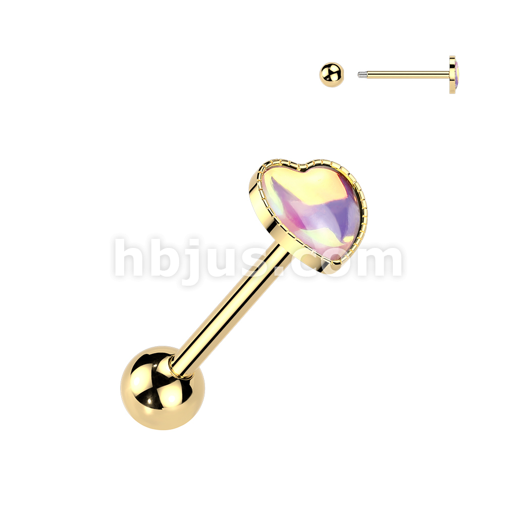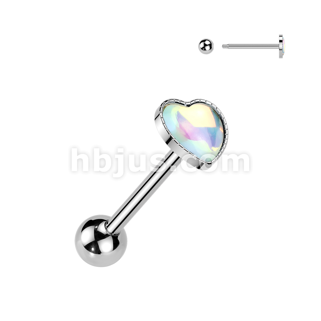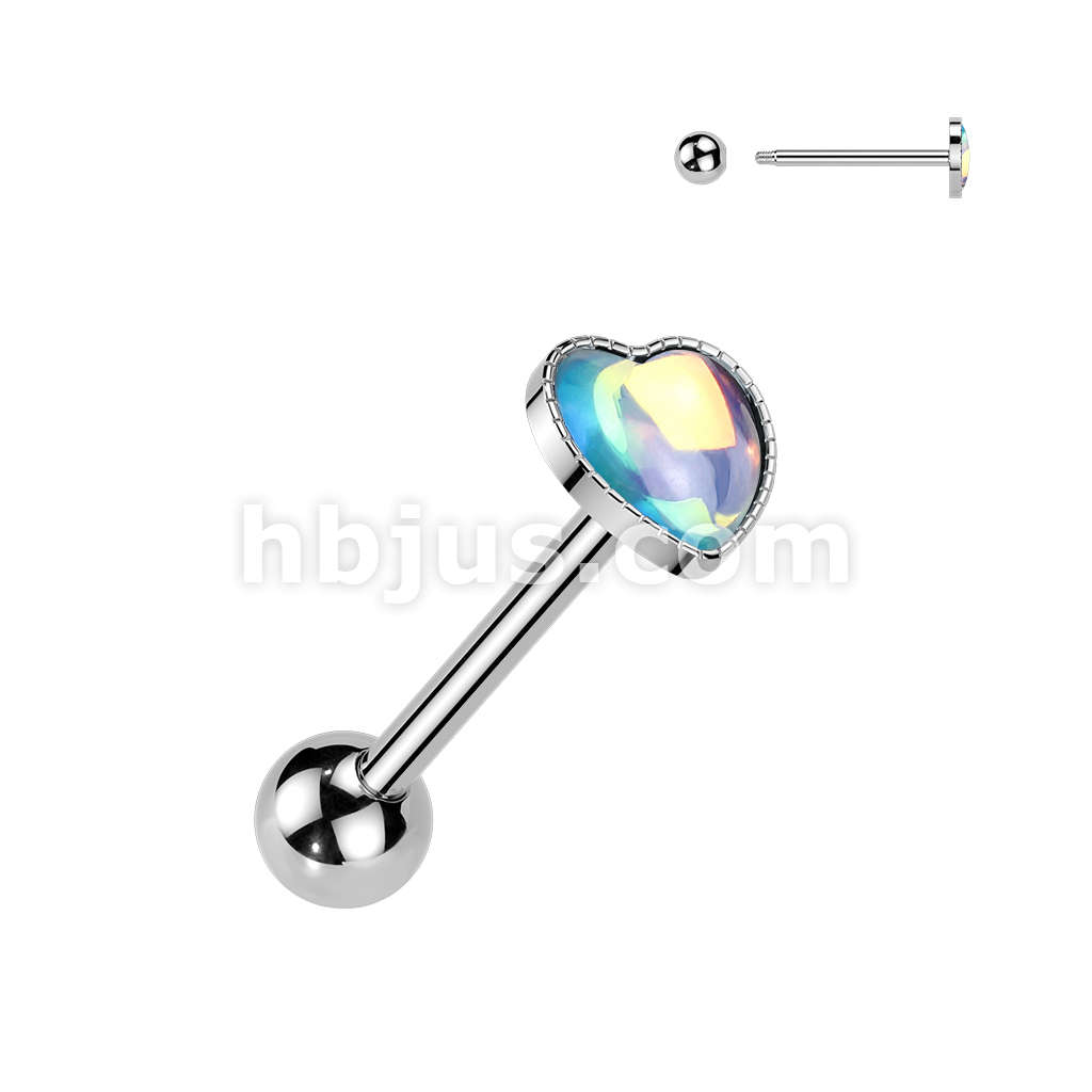 316L Iridescent Stone Heart Barbell Tongue Ring